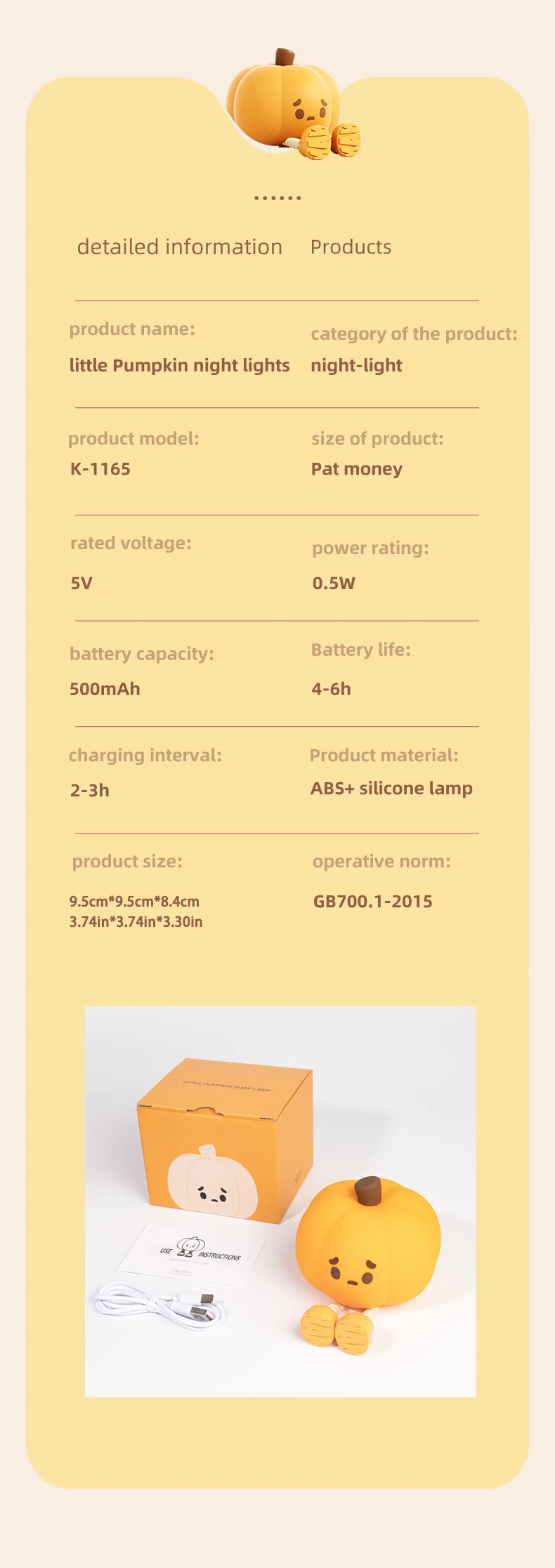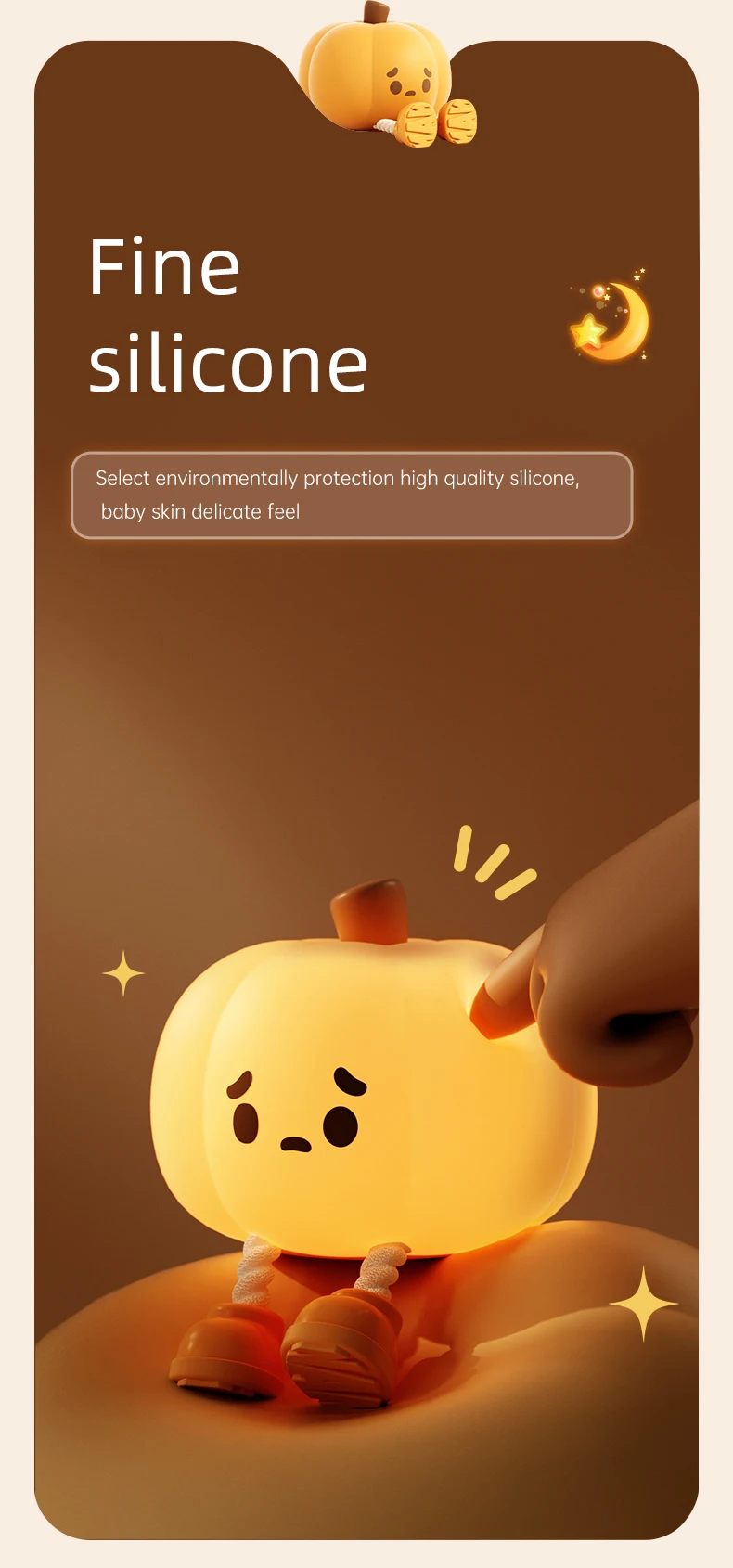 1 pequeña calabaza luz nocturna Linda lámpara de silicona suave decoración de la habitación decoración de la cama regulable temporizada regalo de cumpleaños del bebé de los niños