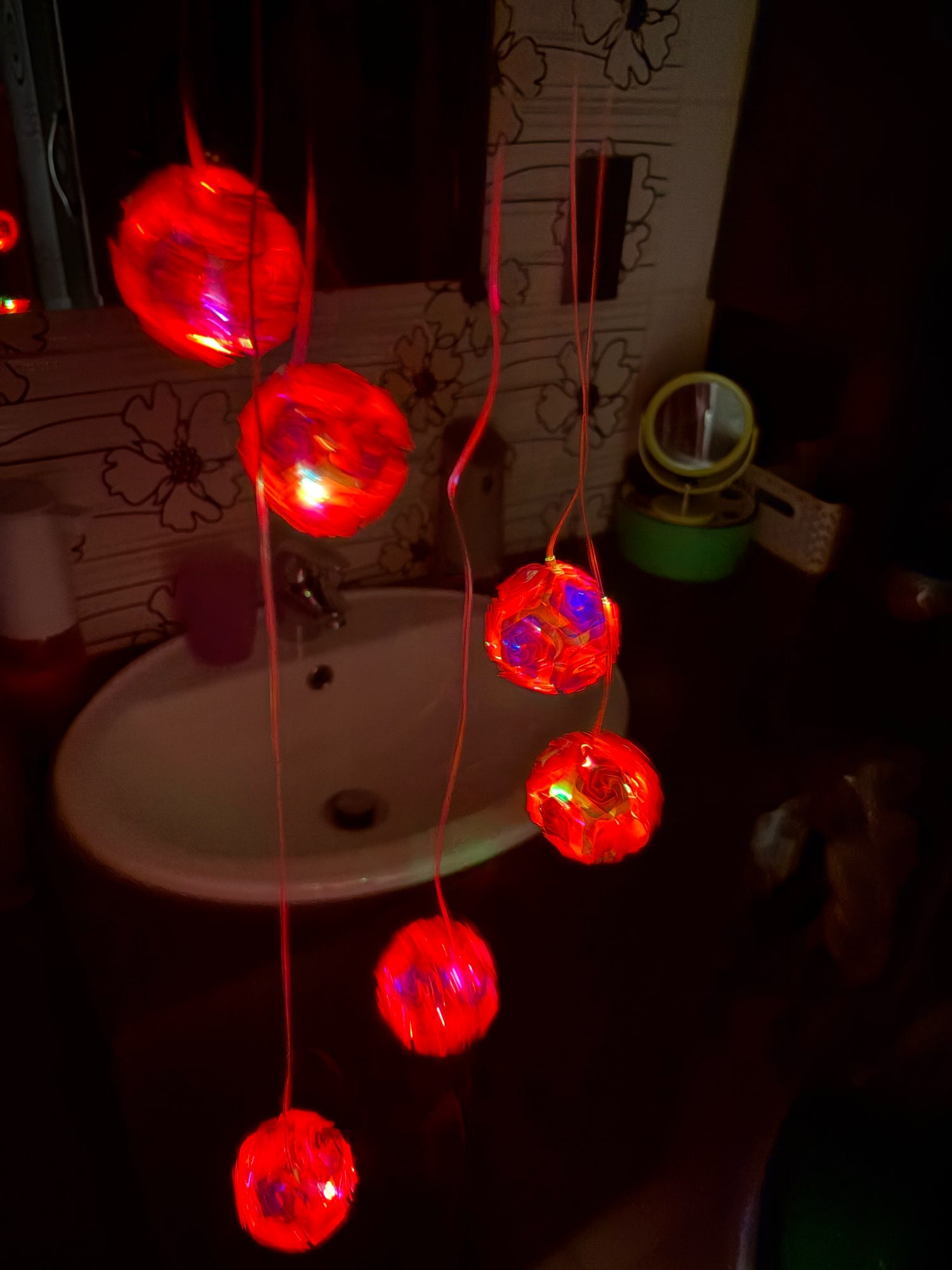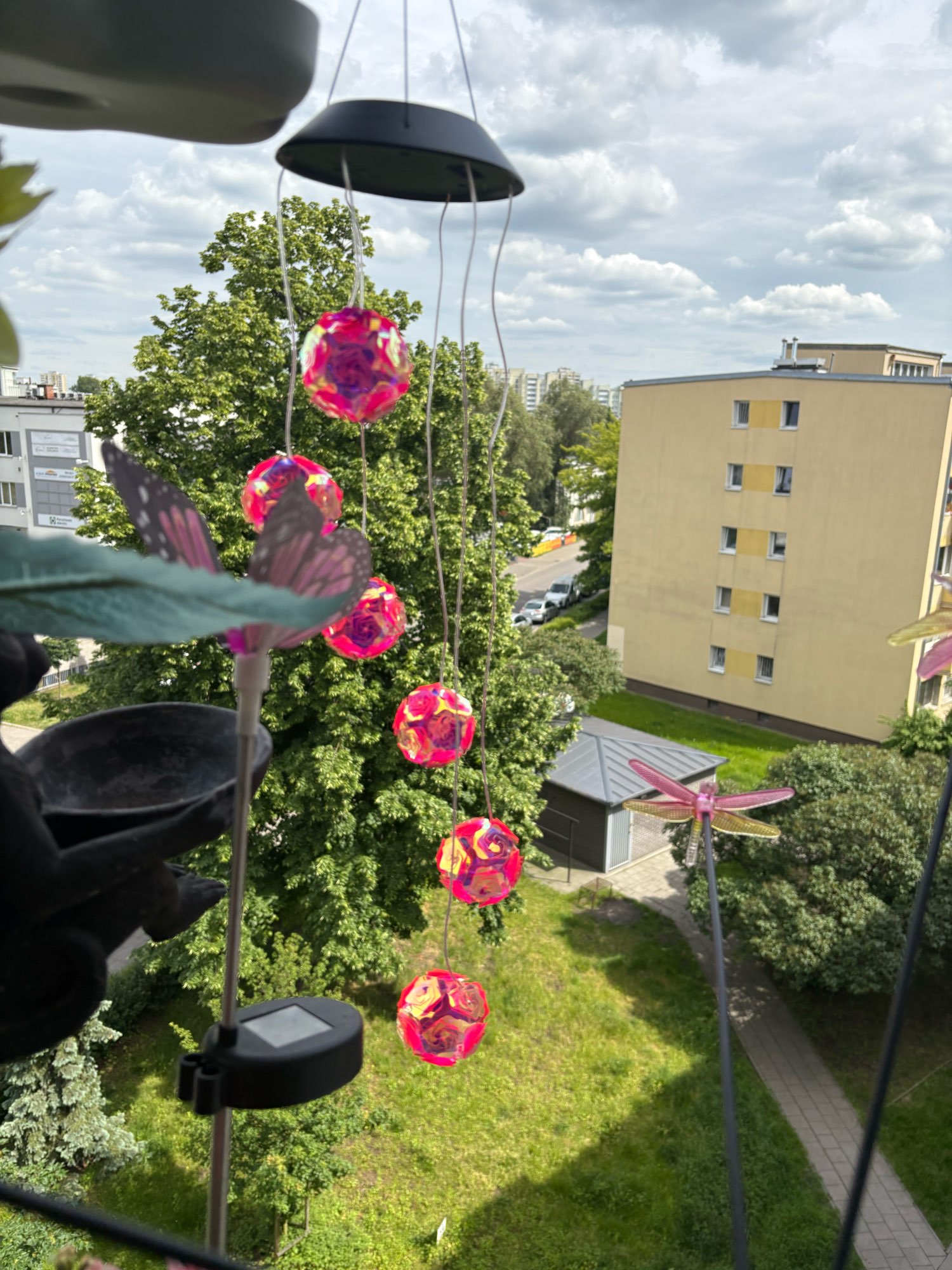 1 unidad de luz de carillón de viento con bola bordada rosa que cambia de Color con energía Solar, luz nocturna impermeable para exteriores, lámpara Solar colgante
