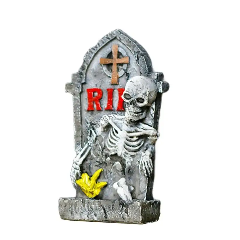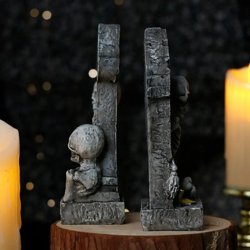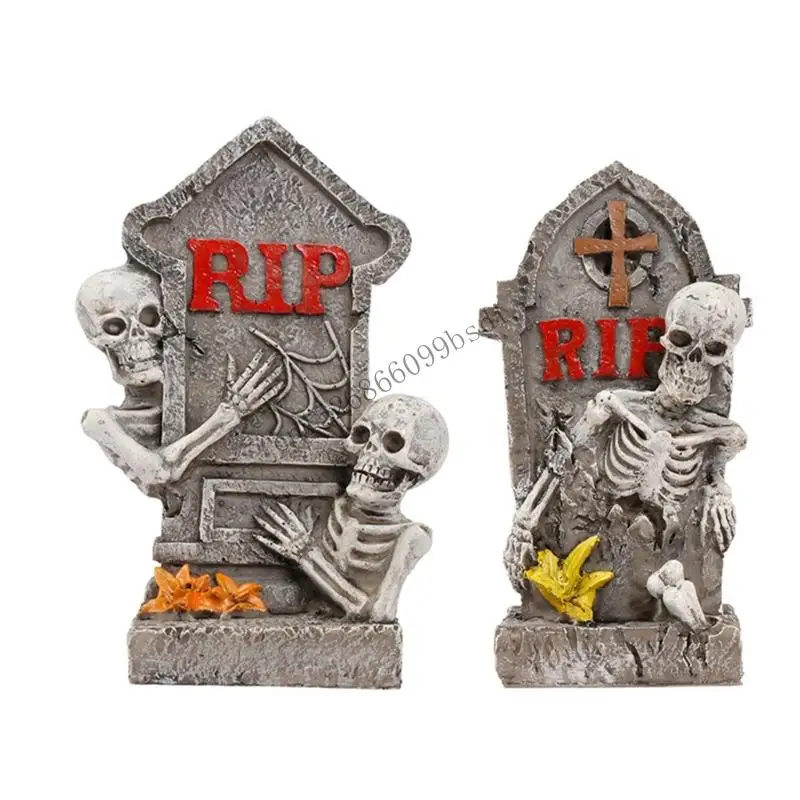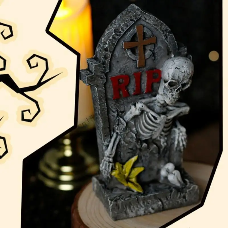 Diseño exquisito y atractivo: figuras de lápidas en miniatura de Halloween con calavera para mejorar tus decoraciones de Halloween