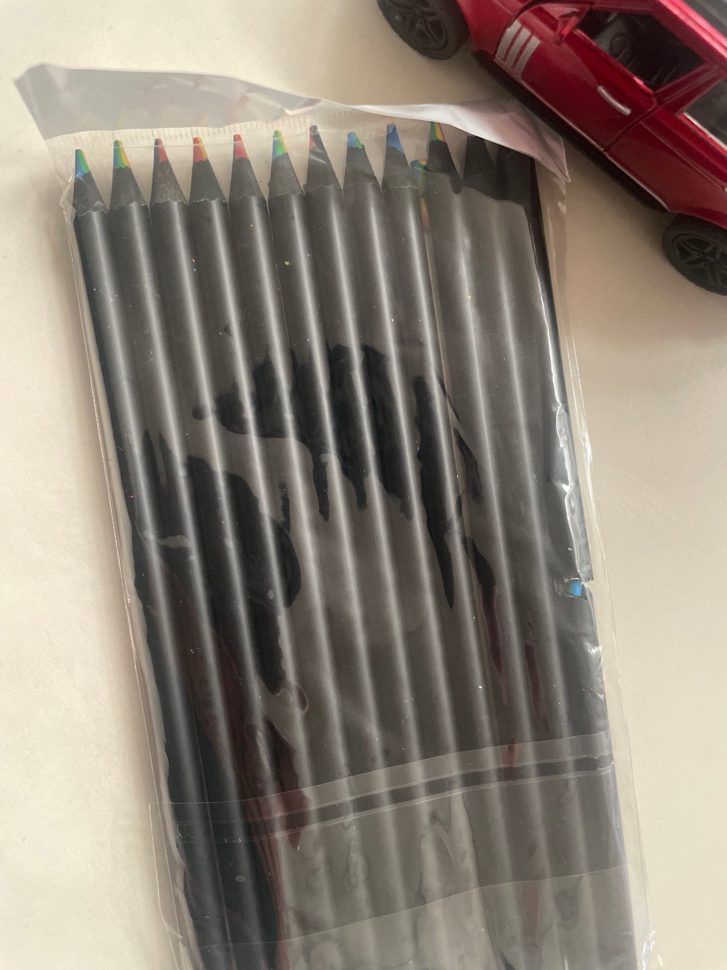 El pago por color está en medio. Algunos se rompieron durante el transporte, deberían enviarlos en un paquete diferente. No tengo esperanzas sobre su longevidad. La idea es buena. Es para una bolsa de regalos de fiesta para niños de 4 años, sigue siendo divertido. Funciona. pero no impresionante
