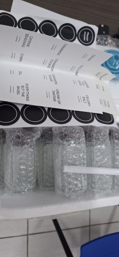 La etiqueta incluye todos los nombres de especias y alimentos, junto con algunas etiquetas y etiquetas en blanco, lo que le permite escribir su logotipo exclusivo para las especias. La etiqueta se pega uniformemente en el frasco, lo que no sólo distingue las especias sino que también decora, haciendo que la fila del frasco sea más hermosa y armoniosa. En comparación con otras etiquetas pequeñas circulares, nuestras etiquetas son más llamativas, con un diseño simple y llamativo en blanco y negro, por lo que pueden recordárselo mejor.