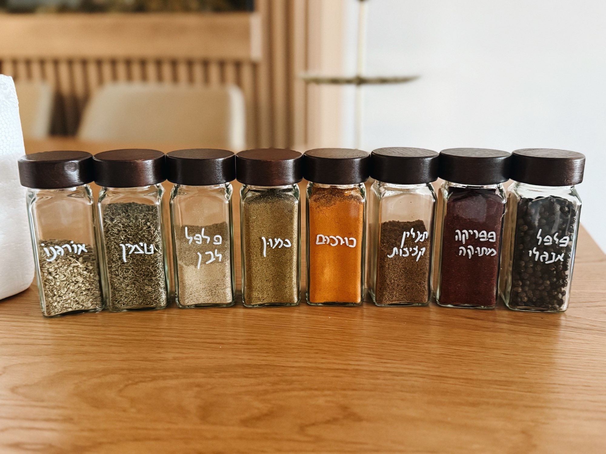 Tarro de especias de vidrio con etiqueta/tapa batida