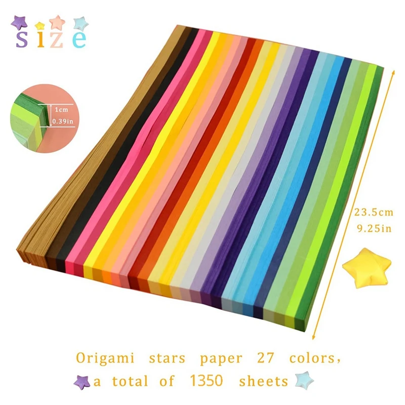 1350 hojas de tiras de papel de estrella, 27 surtidos de papel de estrella de colores, deseo de la suerte, papel de estrellas de doble cara para niños y adultos
