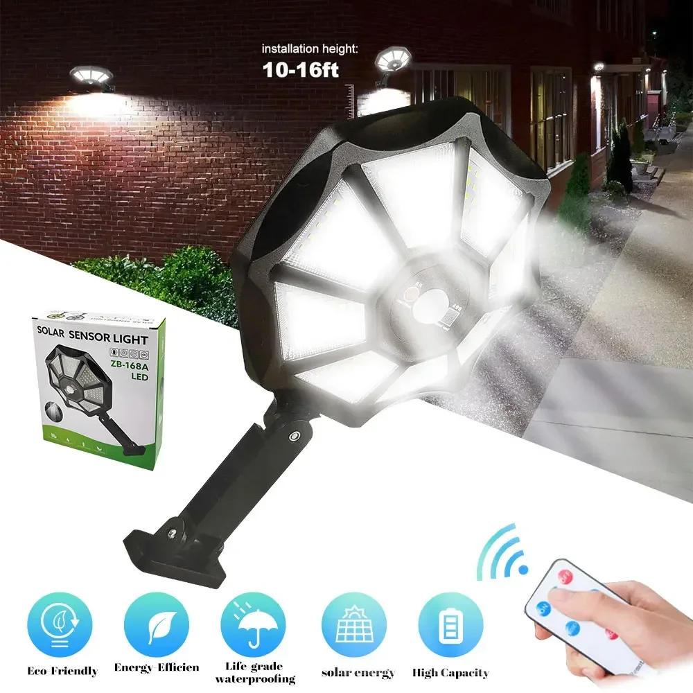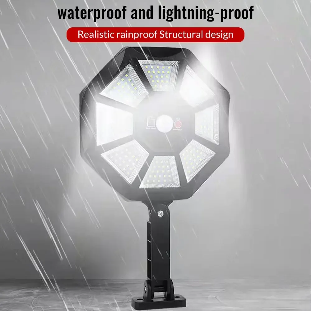 Upgraded Octagonal Solar Outdoor Light: The upgraded solar lights for outside adopts unique octagonal design, equipped with 168pcs super LED beads, without any lighting blind area, providing you with the best lighting.