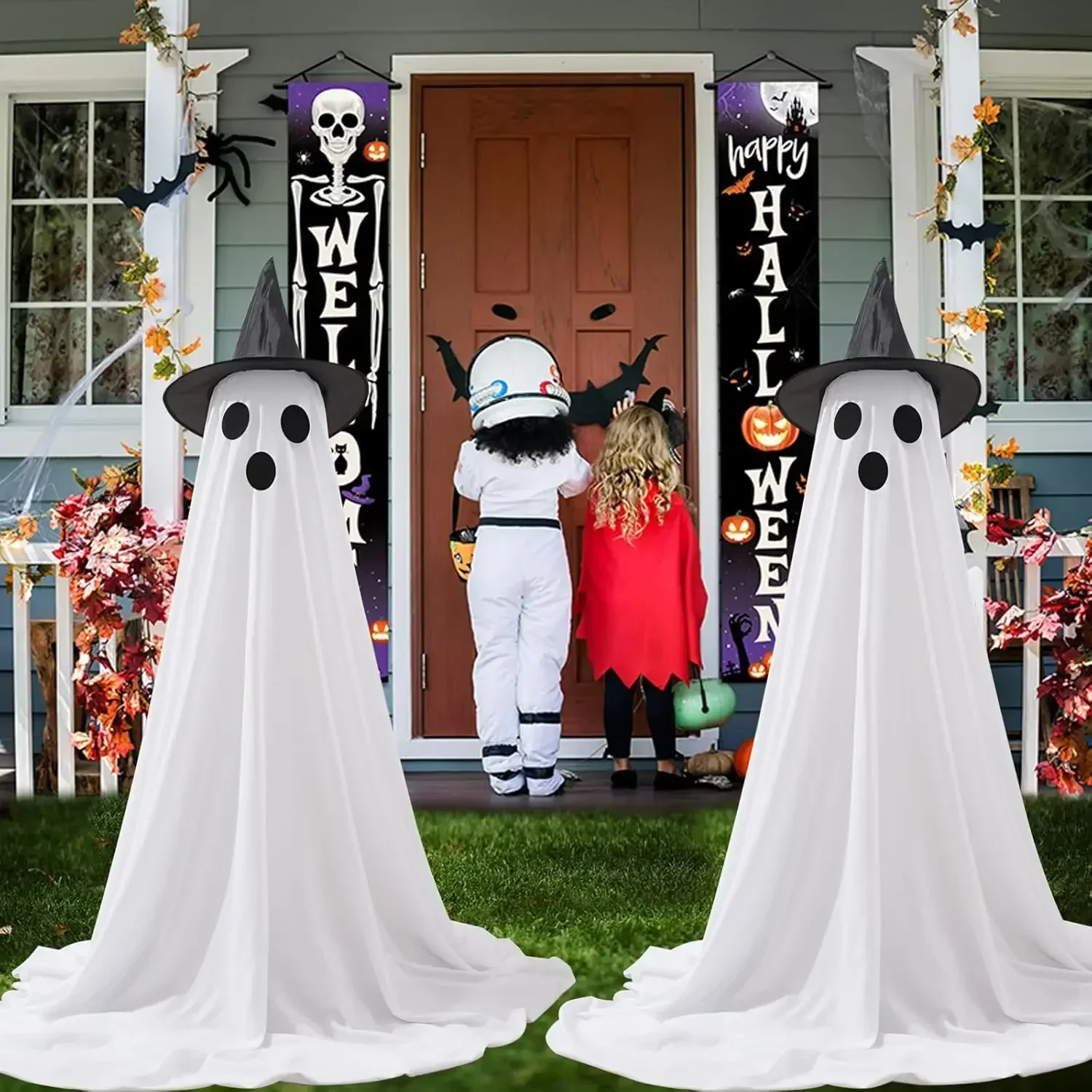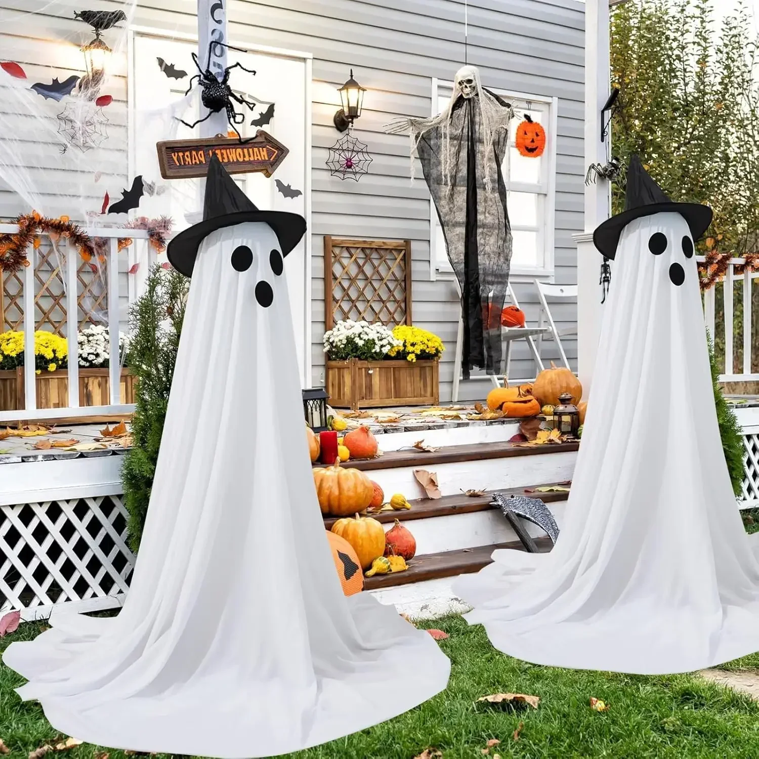 These Halloween ghost decor are perfect for Halloween party, Halloween trick or treat events, Halloween proms, haunted houses and other Halloween themed occasions. Place Halloween ghost decorations in your yard, garden, patio, lawn, front door, or room, have a fun Halloween!