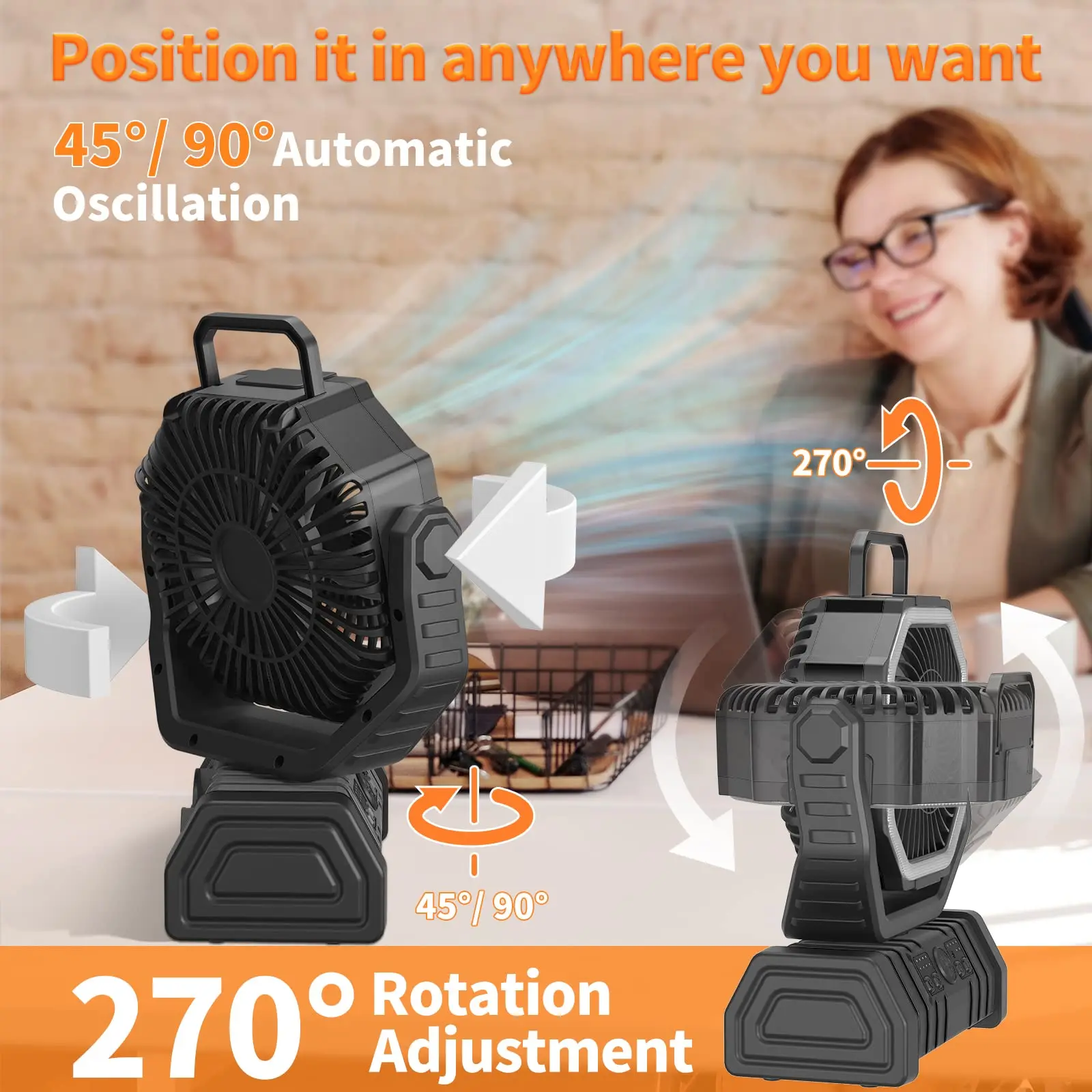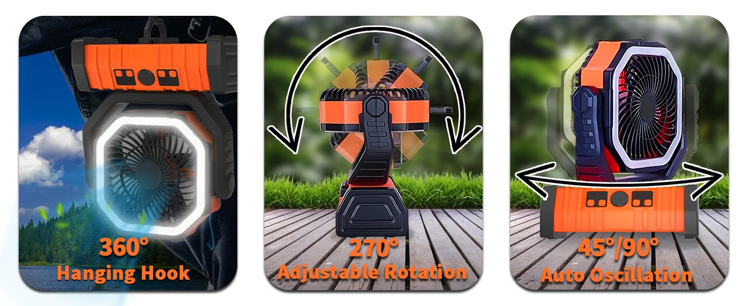Este ventilador es bastante fuerte, tiene buena duración de batería, buena oscilación y no es demasiado grande. Con el gancho y el soporte, se puede colocar fácilmente. Funciona muy bien en mi balcón.