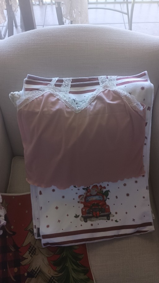 Pedí pijamas para un niño. Bueno, para 45-50 kg son perfectos. La tela se siente genial. Los pantalones con volantes son para aquellos a quienes les gusta así.