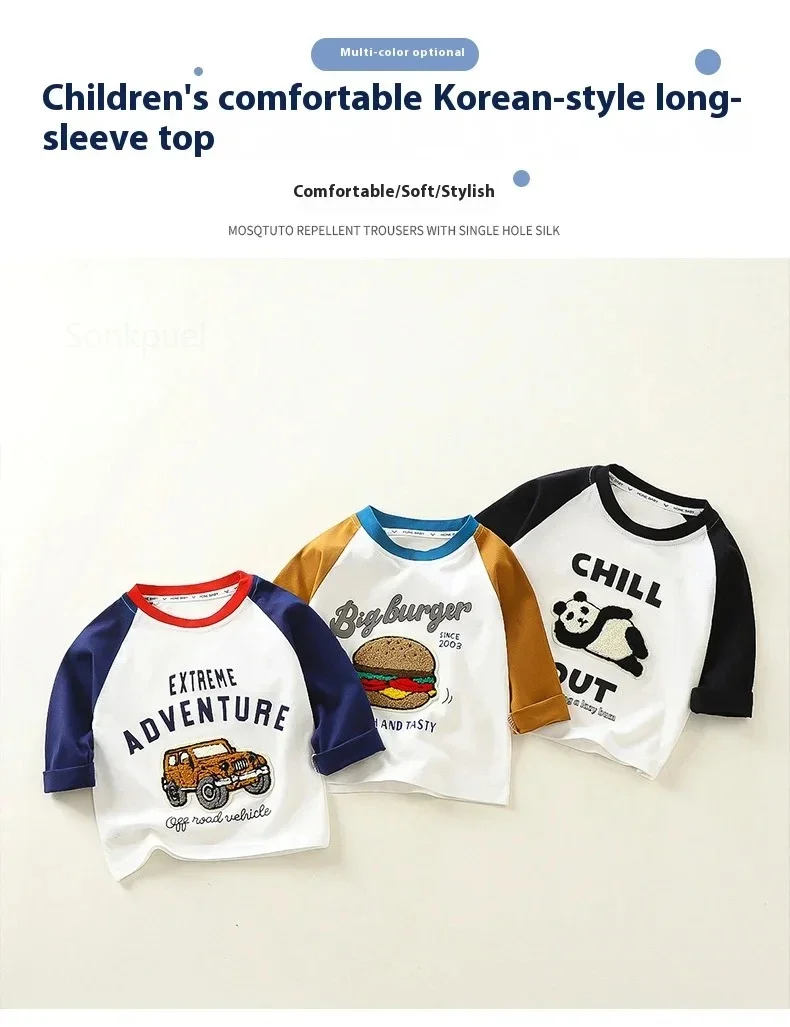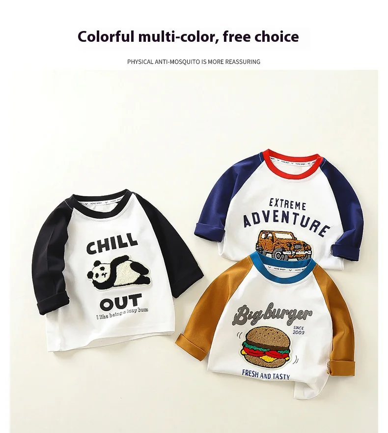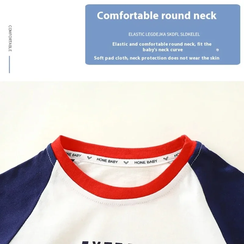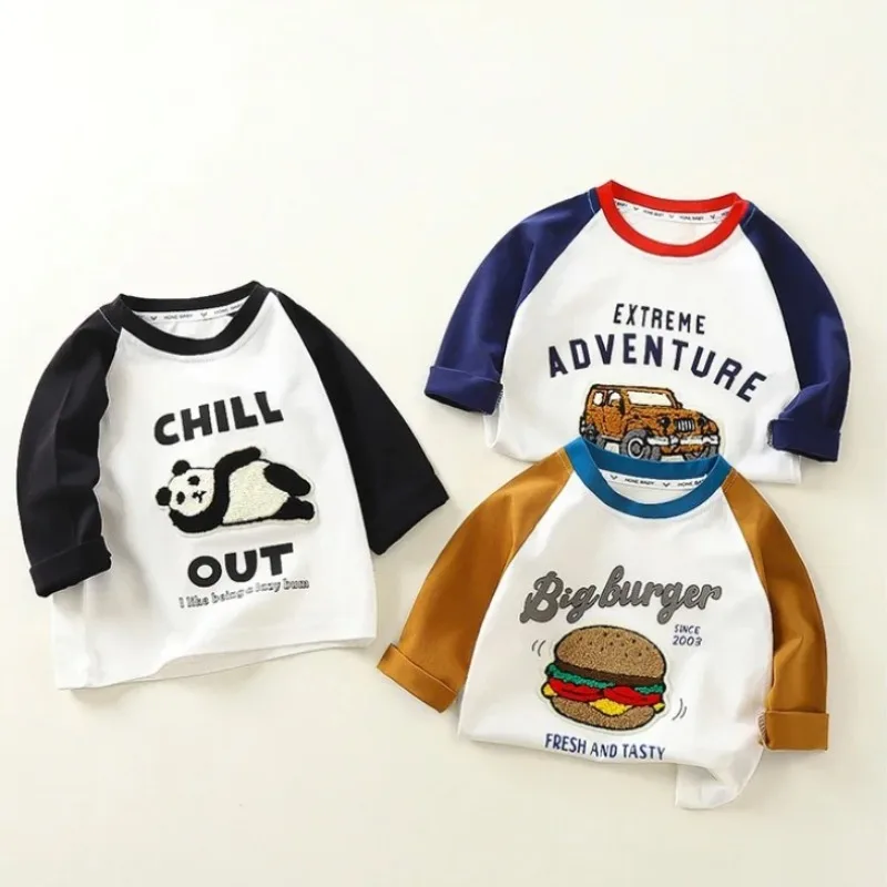 nueva camiseta de manga larga de primavera para niños, Camiseta de algodón con bloques de Color de retazos, Top multicolor para niños