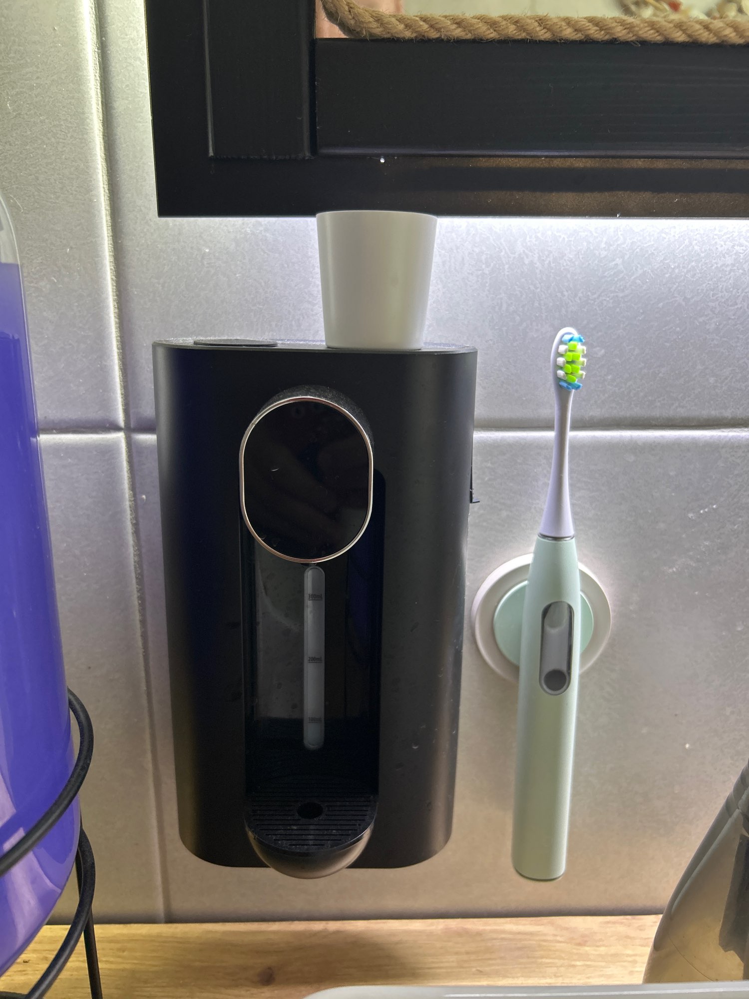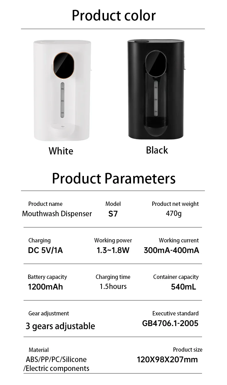2025 Nuevo dispensador de enjuague bucal inteligente sin contacto de 540 ML con LED, 3 modos, montaje en pared/mesa, 2 tazas, esencial para el baño 2 en 1
