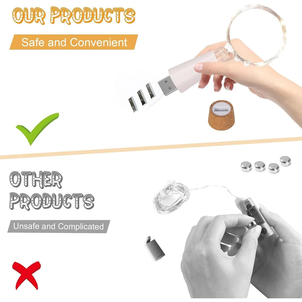 Hermosas luces , son USB la puedes cargar aunque vienen con carga, lo único que no me sirve para una botella tipo garrafa pero me las ingeniare para que sirva , compre 2 unidades así que la otra se la pondré a otra botella , en general me encantaron, llegaron en una semana, los recomiendo