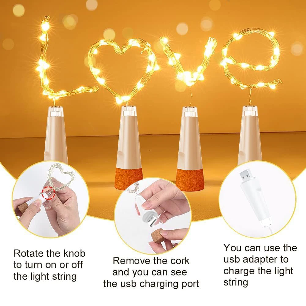 Hermosas luces , son USB la puedes cargar aunque vienen con carga, lo único que no me sirve para una botella tipo garrafa pero me las ingeniare para que sirva , compre 2 unidades así que la otra se la pondré a otra botella , en general me encantaron, llegaron en una semana, los recomiendo