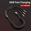 3 en 1 66W 6A Cable USB tipo C de carga rápida Cable Micro USB para iPhone Cable de carga para Samsung Xiaomi Cable cargador