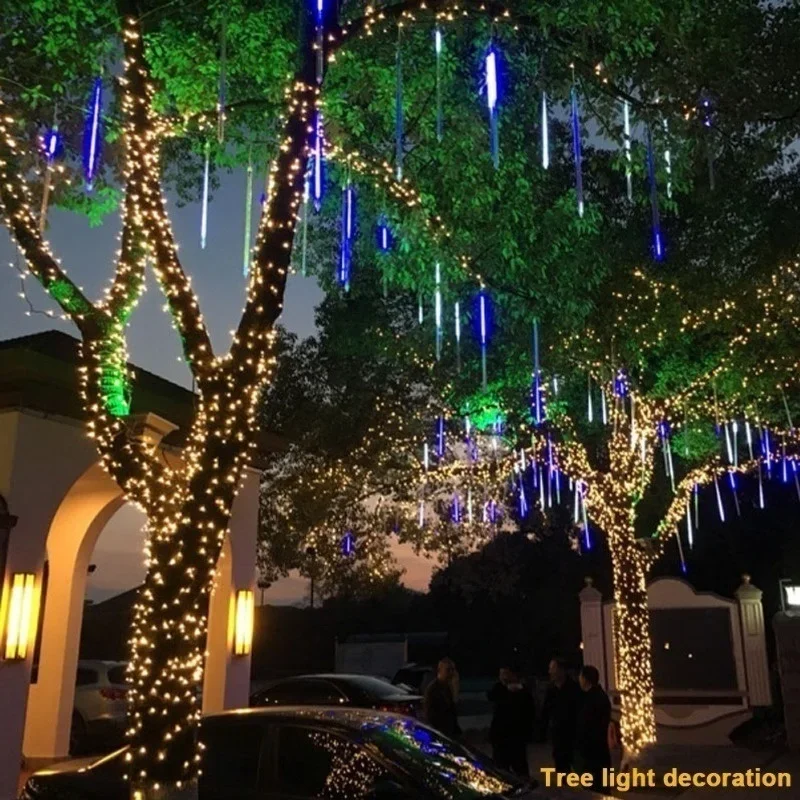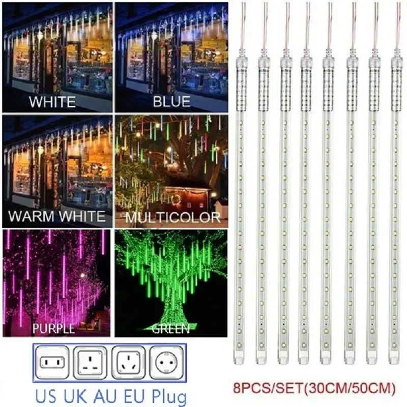 30cm/50cm impermeable lluvia de lluvia de meteoritos 8 tubos LED cadena de luces para vacaciones al aire libre decoración navideña árbol enchufe UE/EE. UU./AU/Reino Unido