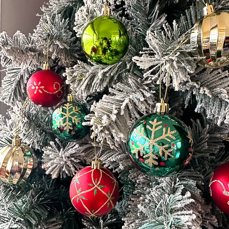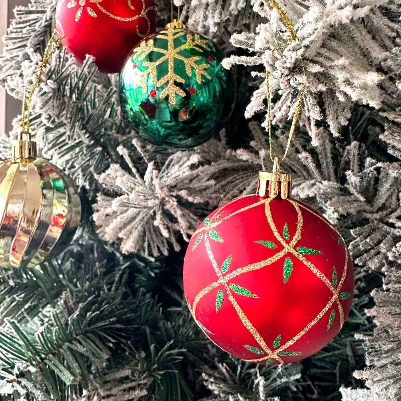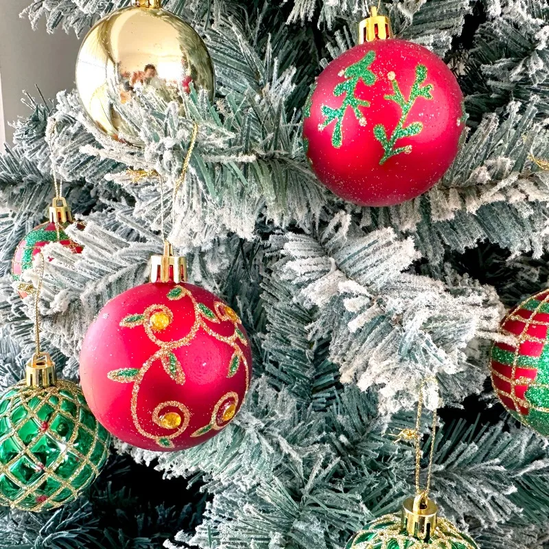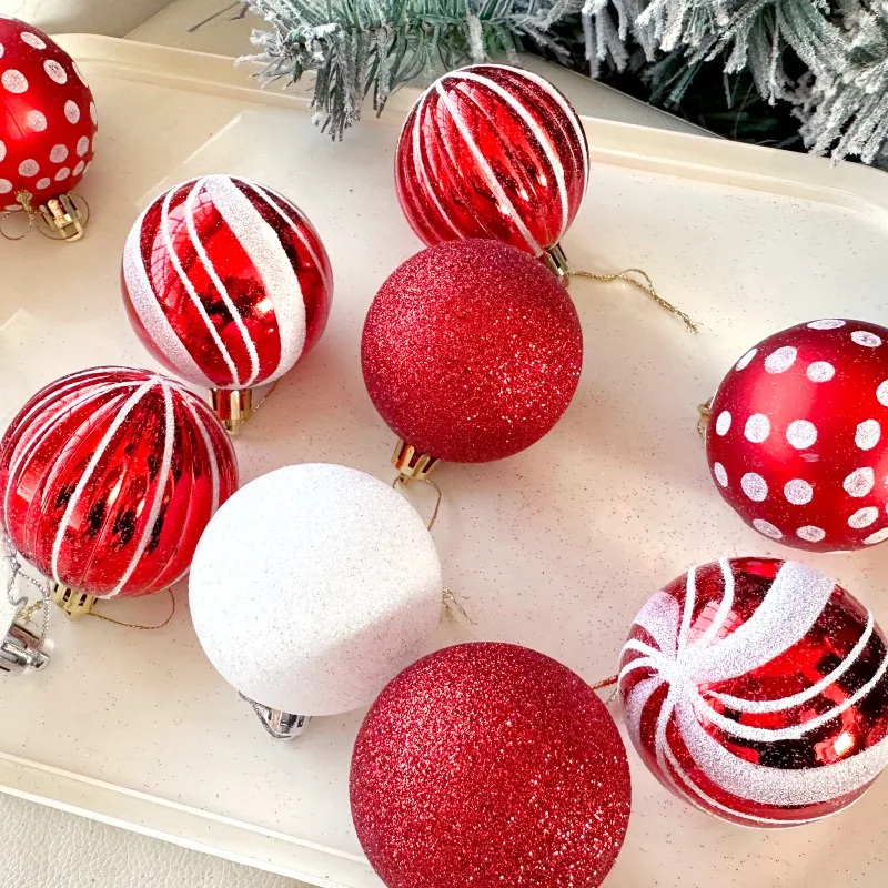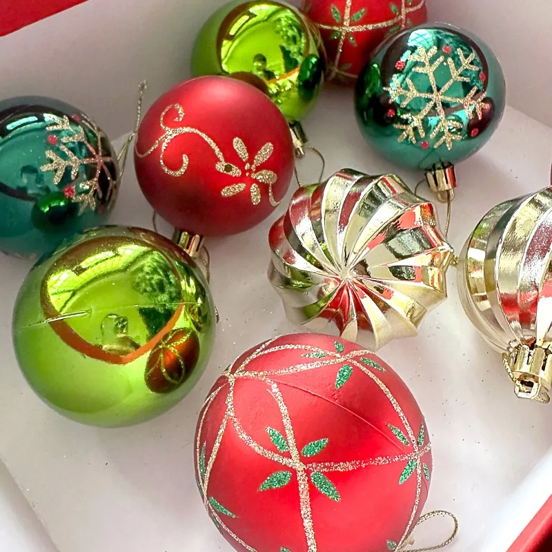 Las bolas están en una caja y, además, en un contenedor de plástico; a pesar de que la caja llegó aplastada, todas llegaron sanas y salvas, ninguna está rota, ¡y son preciosas!