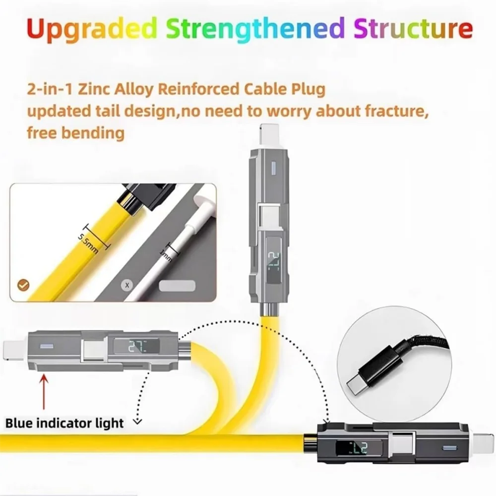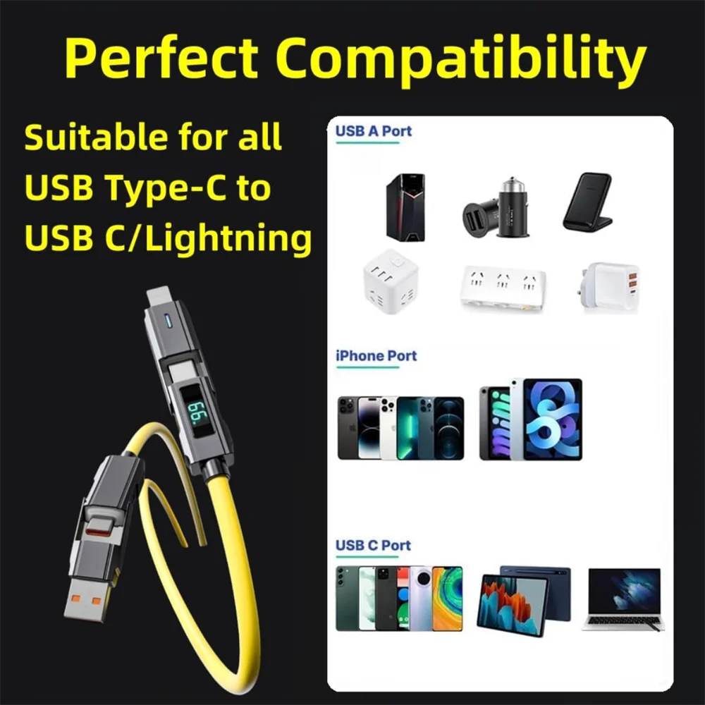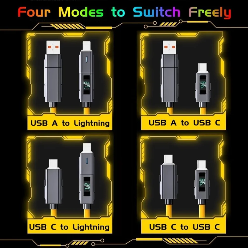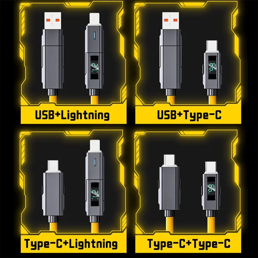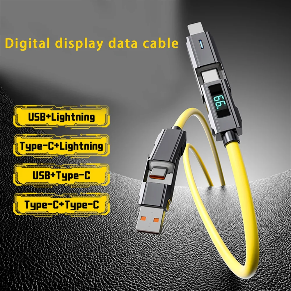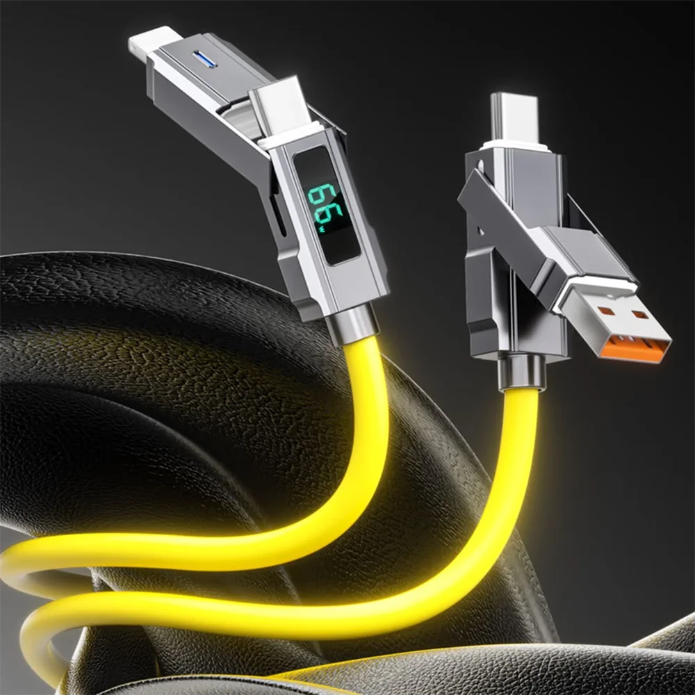 Cable de carga rápida 66W 4 en 1 USB C Lightning Micro 1 metro con pantalla LED