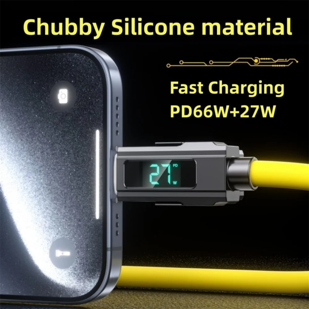 66W 4 en 1 USB C Lightning Micro Cable de carga rápida de 1 metro con pantalla LED, carga rápida PD para iPhone inteligente con sincronización de datos