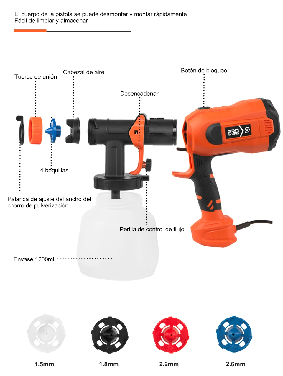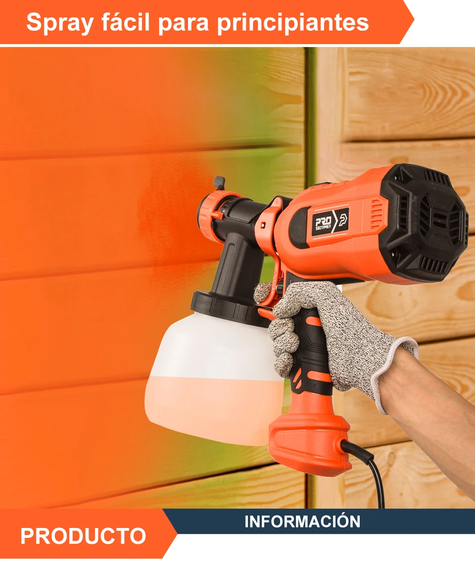 750W pistola pulverizadora de pintura electrica HVLP, 1200ml pistola de pintura para paredes de casa spray pulverizador de agua, 4pcs boquilla aerografo Muebles de jardín herramientas de pintura prostormer