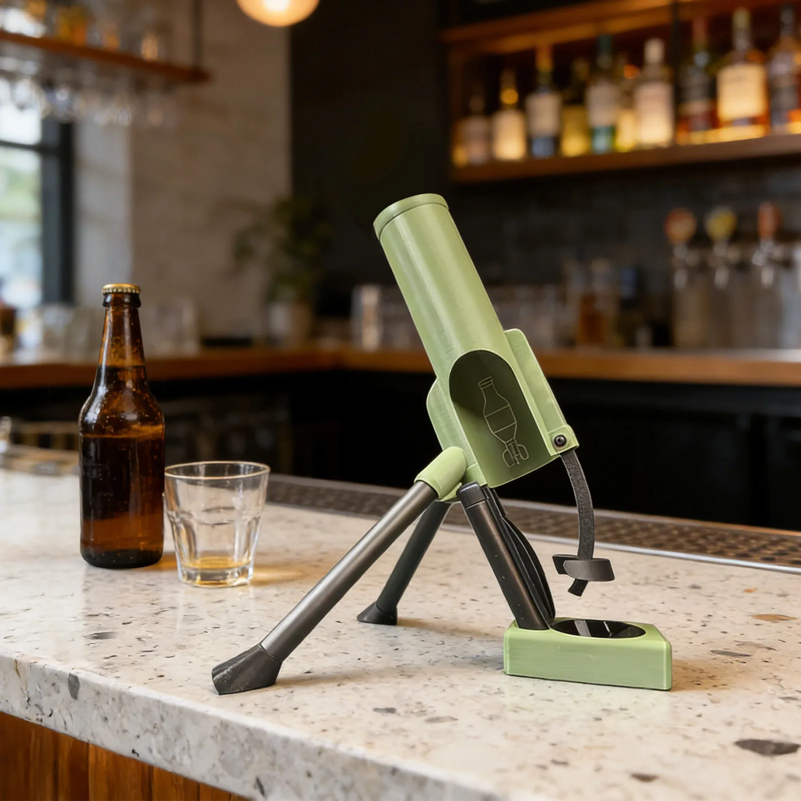 Abridor de botellas de cerveza de mortero de 51mm, tapa resistente, abridor de empuje hacia abajo con manos libres, espacio exclusivo para hombres para Bar, adornos impresos en 3D