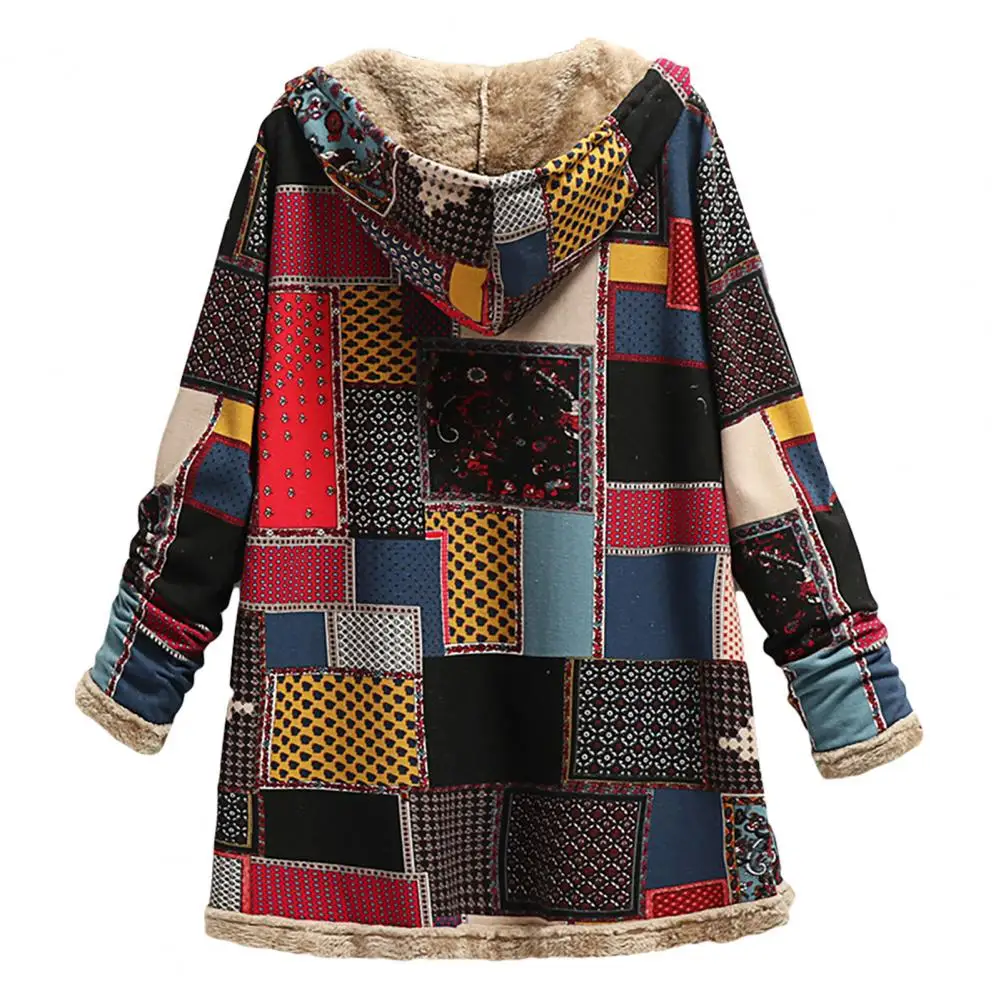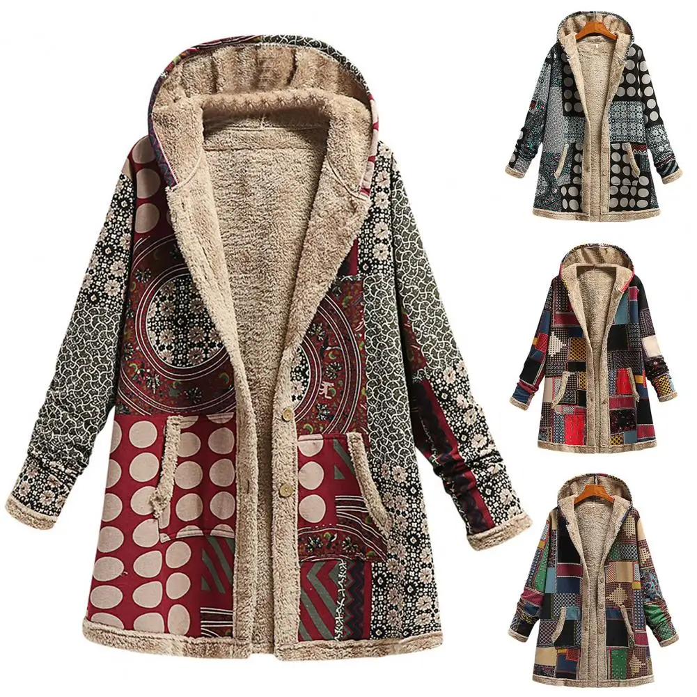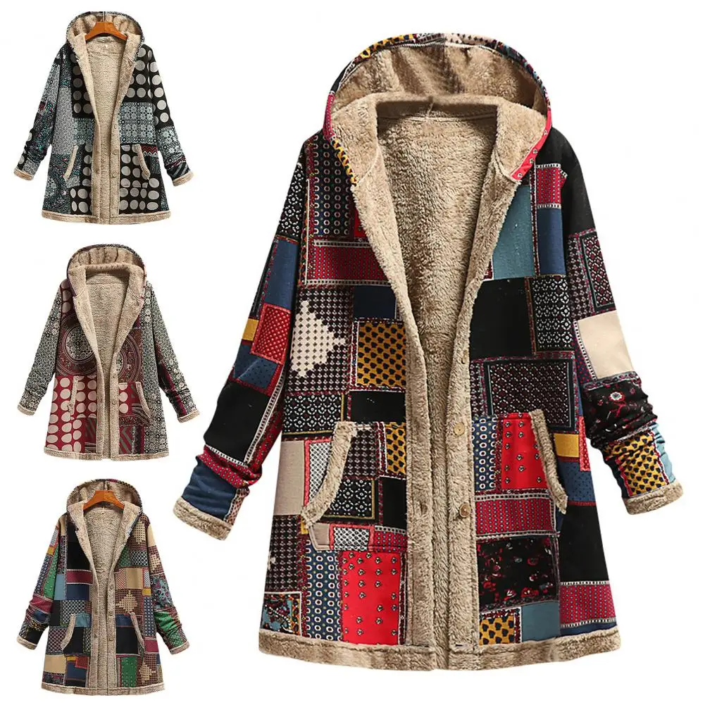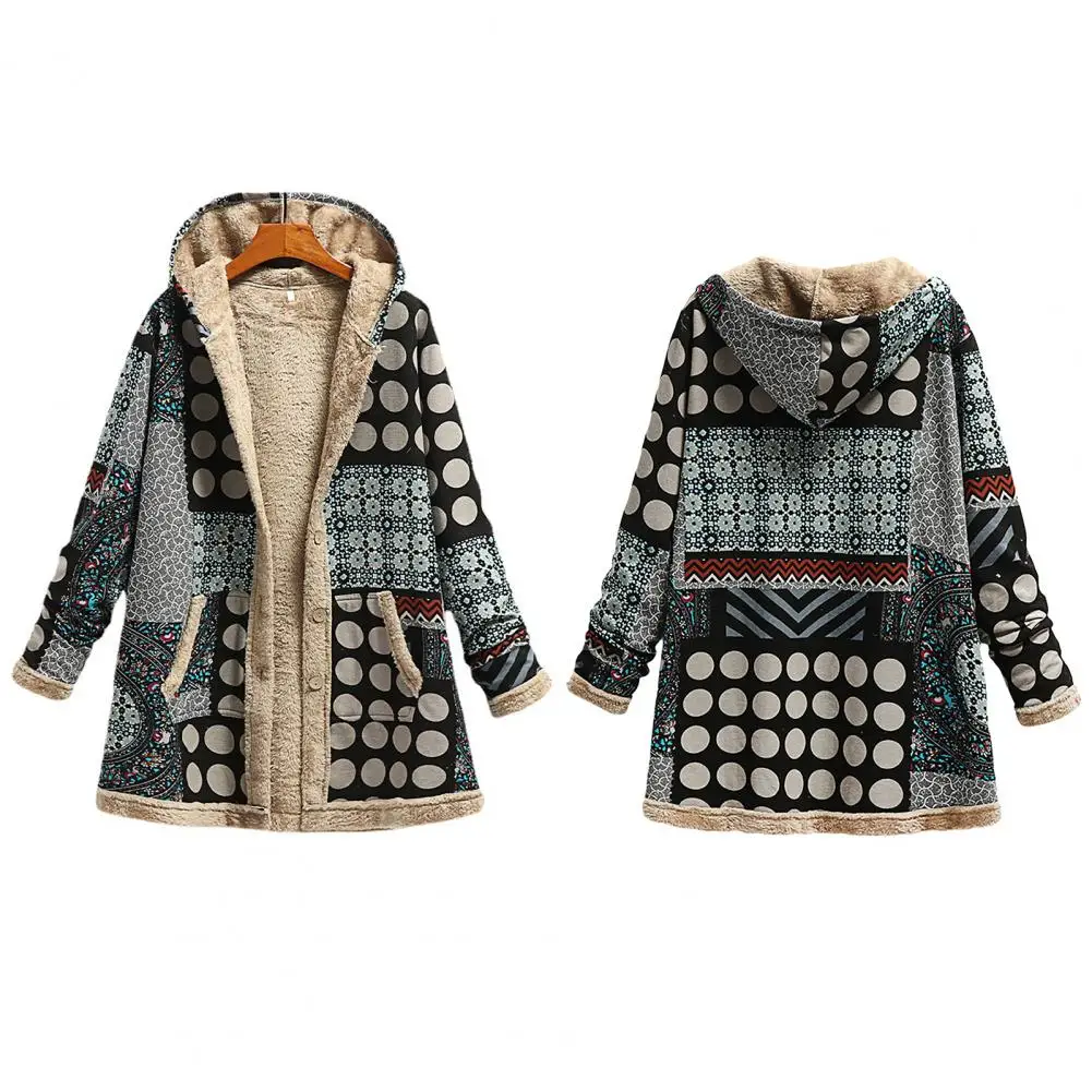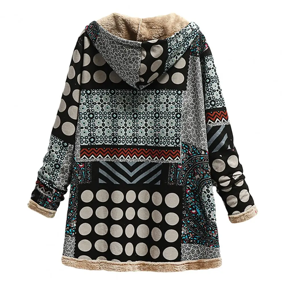 Abrigo de mujer Abrigo de invierno con patrón étnico de poliéster con capucha para mantener el calor para uso diario