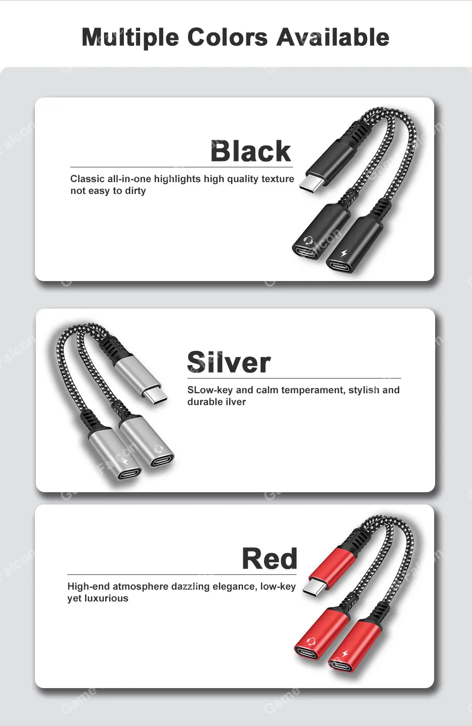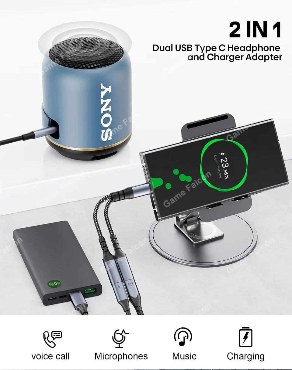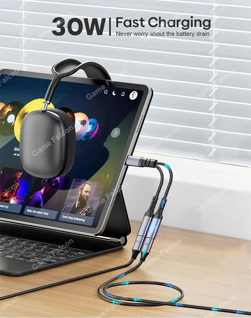 Adaptador de conector para auriculares 2 en 1 tipo C a USB C dual, no te preocupes, el teléfono solo tiene un conector, no puedes jugar al mismo tiempo