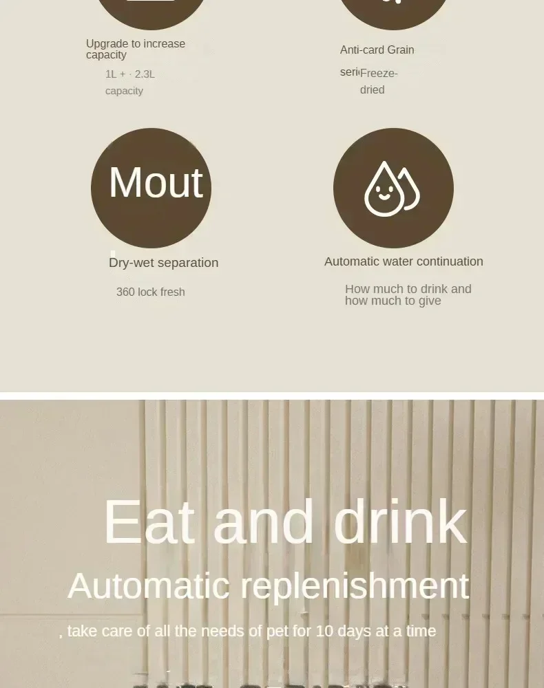 El diseño de gran capacidad, adecuado para diferentes tamaños de mascotas, reduce el problema de reabastecimiento frecuente.Especialmente indicado para dueños de mascotas ocupadas, para que puedas salir con tranquilidad.