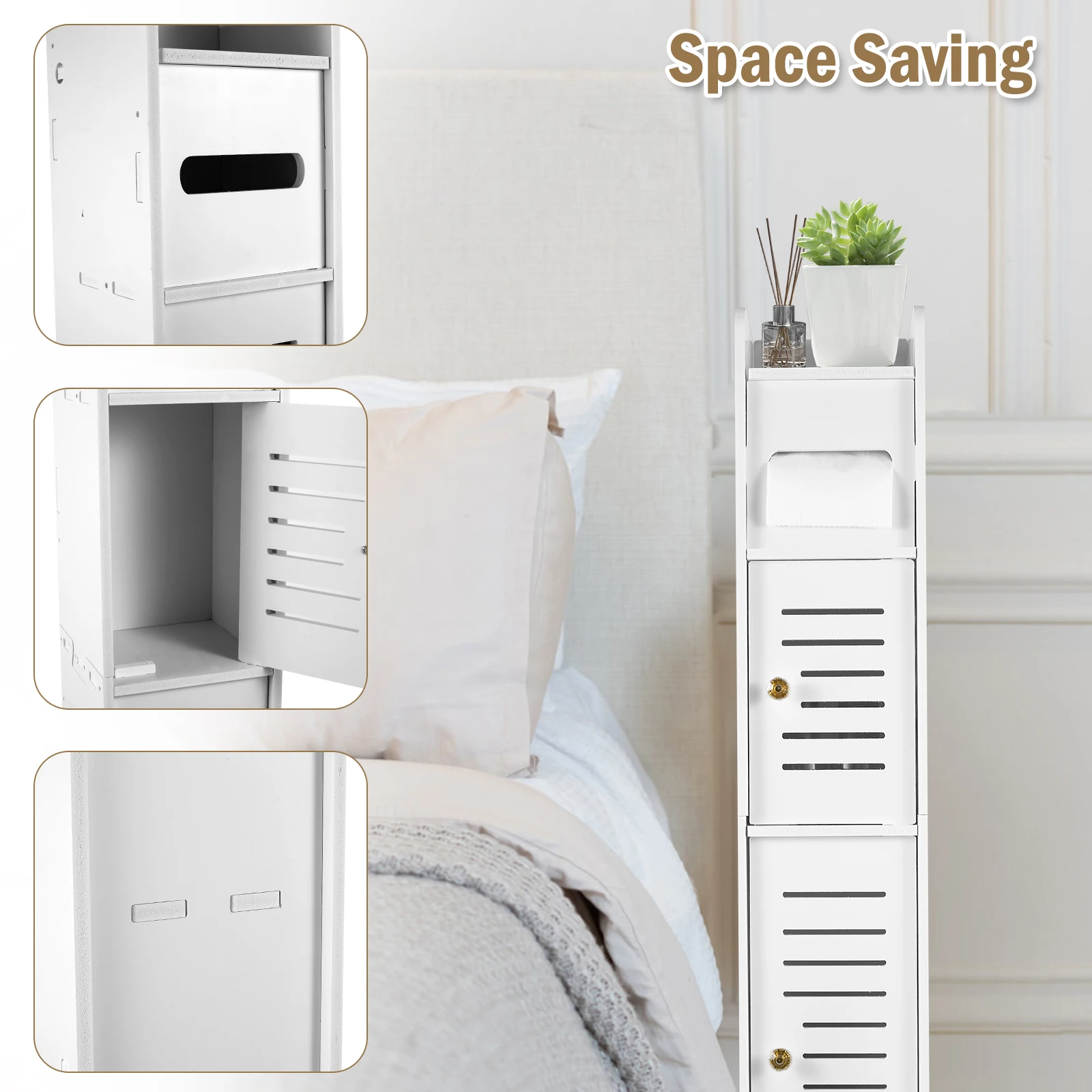 [Tamaño adecuado] Este gabinete de almacenamiento de baño mide 80x15x15 cm/31,5×5,9×5,9 pulgadas, el diseño de cuerpo estrecho es perfecto para colocar en el pequeño espacio de su hogar, ayudándole a hacer un uso razonable del pequeño espacio para almacenar rollos de papel higiénico.