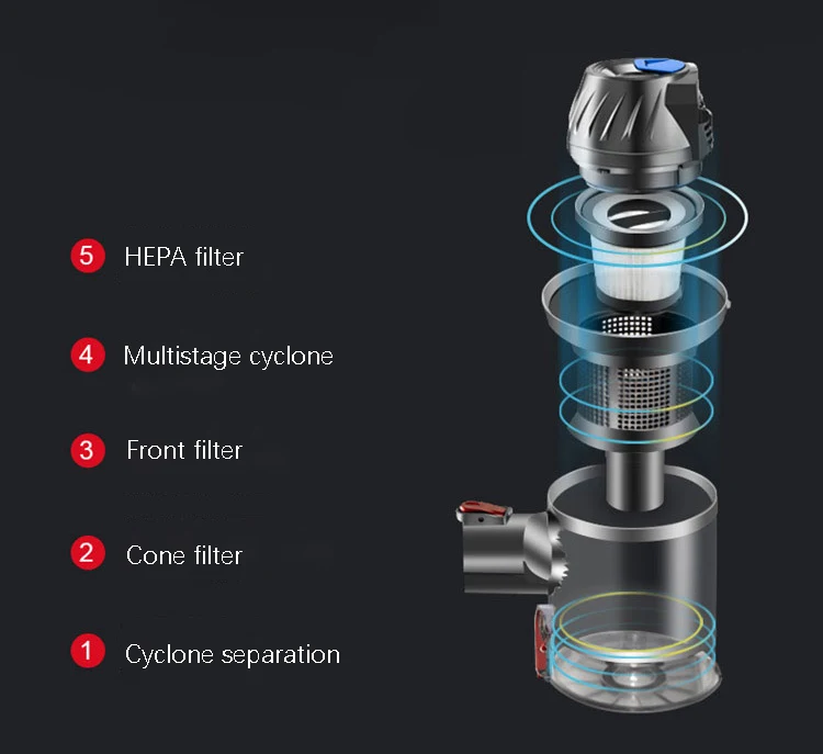 2. Después de que el producto se haya utilizado durante un período de tiempo, el filtro HEPA debe limpiarse o reemplazarse. Si el filtro está bloqueado, la succión se reducirá.