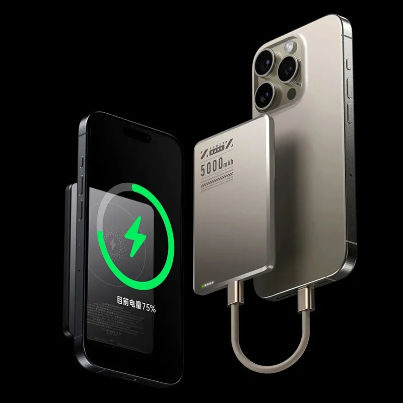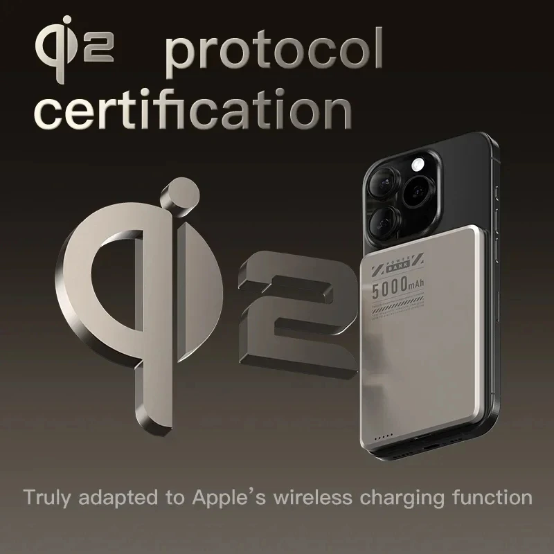 Cargador de batería externa inalámbrico delgado PowerBank magnético de 5000mAh, carga rápida Qi2 ultrafina para MagSafe iPhone Samsung HUAWEI