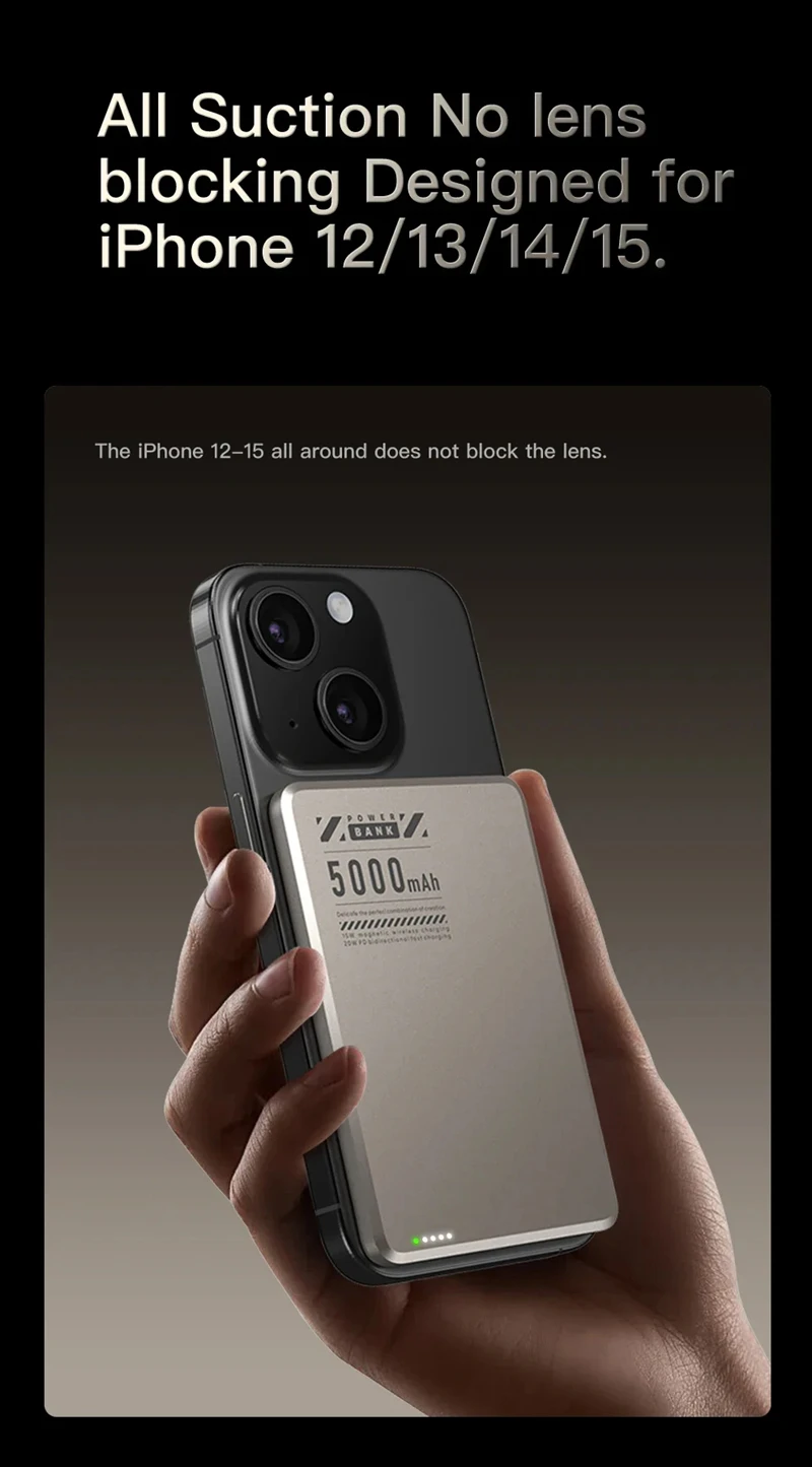 (Nota: función de carga inalámbrica magnética para iPhone 16 15 14 13 12 Series directamente, otros teléfonos necesitan usar esta carga inalámbrica magnética necesitan una funda de teléfono Magsafe o un anillo magnético)