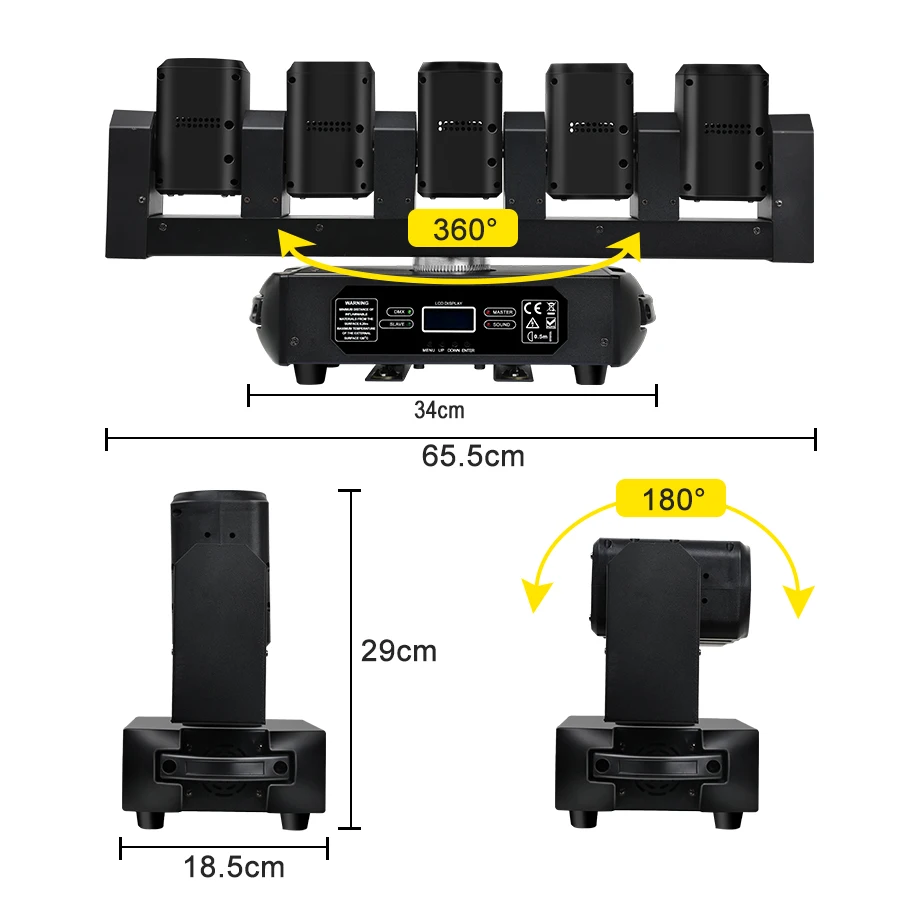 Control: control por voz, automático, DMX512, maestro-esclavo.
