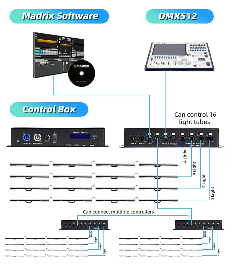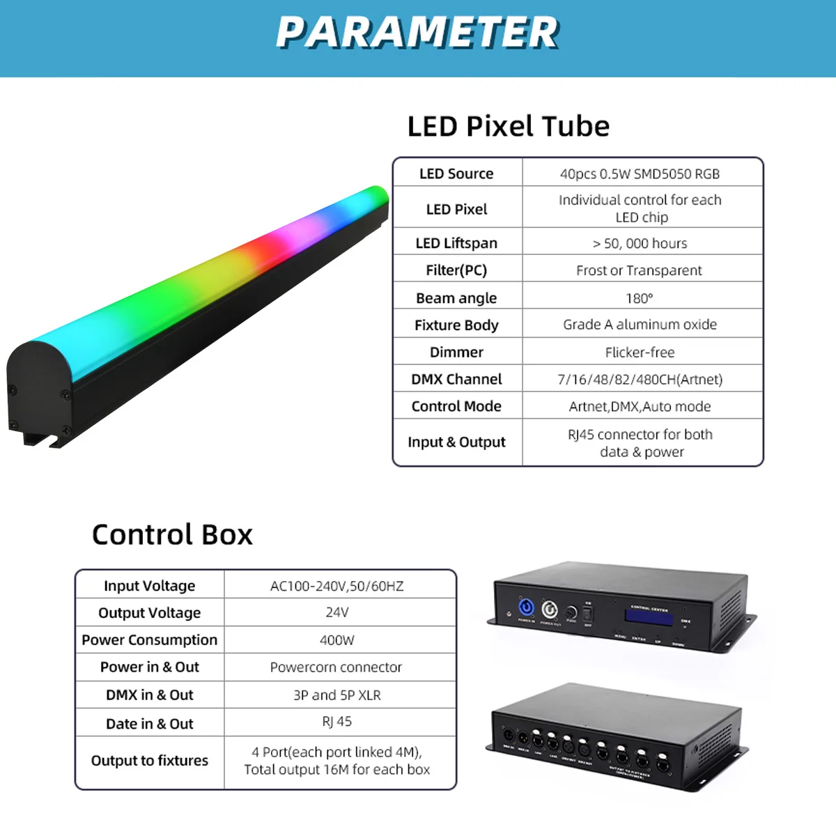 Barra de píxeles LED RGB 3 en 1, tubo LED, KTV, teatro, auditorio, escenario, iluminación de concierto, caja de Control Artnet con modo DMX