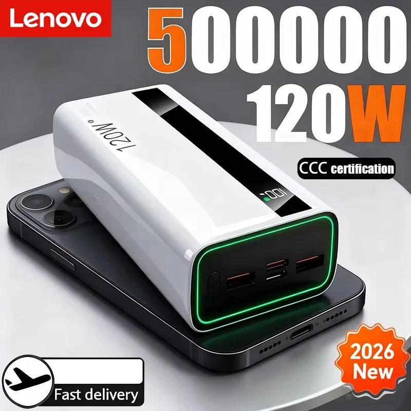 Batería Externa Lenovo de 120W con Carga Súper Rápida, 500000mAh de Alta Capacidad, Power Bank Portátil con Pantalla Digital para iPhone y Samsung.
