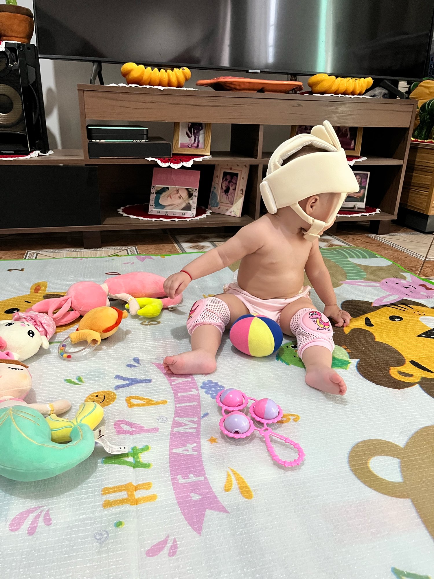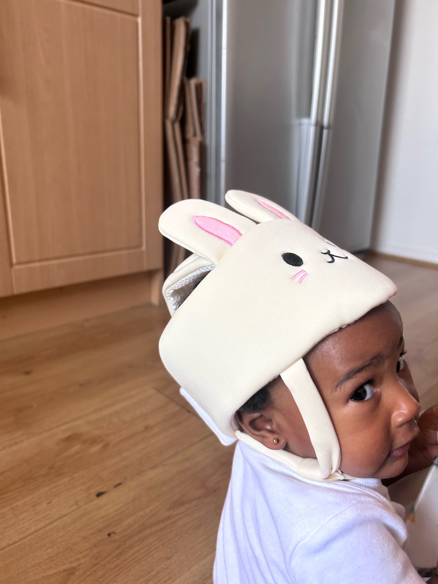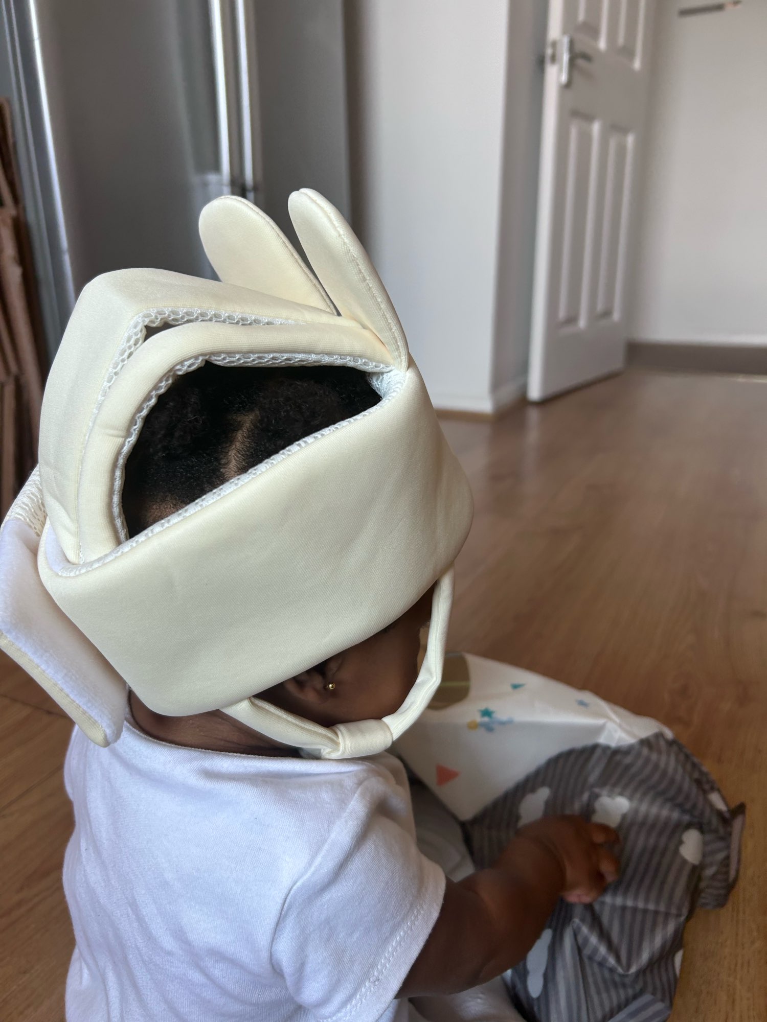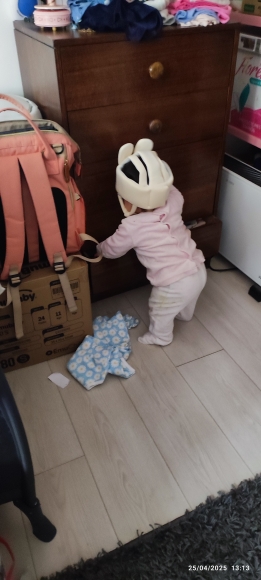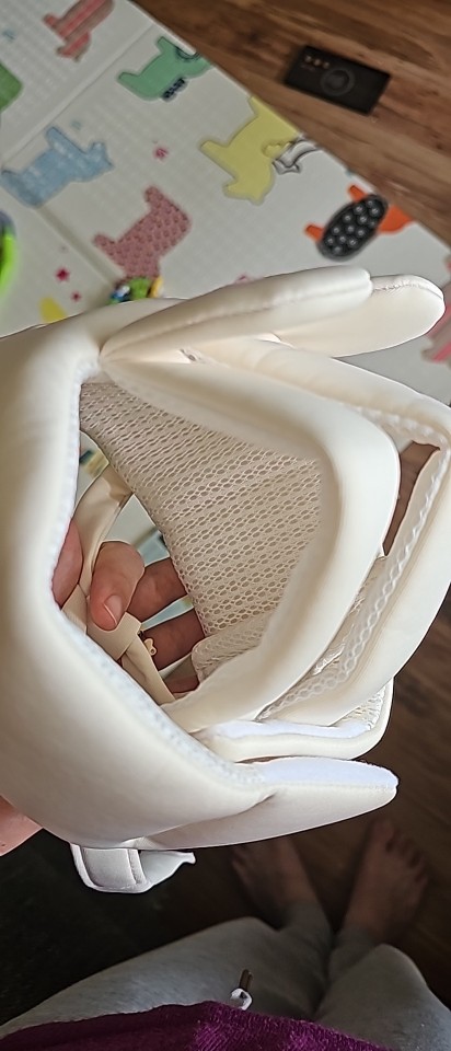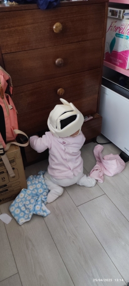 Este casco es muy lindo y hermoso, te hace querer admirar la belleza de tu hijo. Lo único es que la cabeza del bebé se moja con él, especialmente si tu hijo es muy activo y le gusta jugar, por lo que podría no ser cómodo para el pequeño. Pero cumple sus funciones principales muy bien, todo está genial contra impactos.