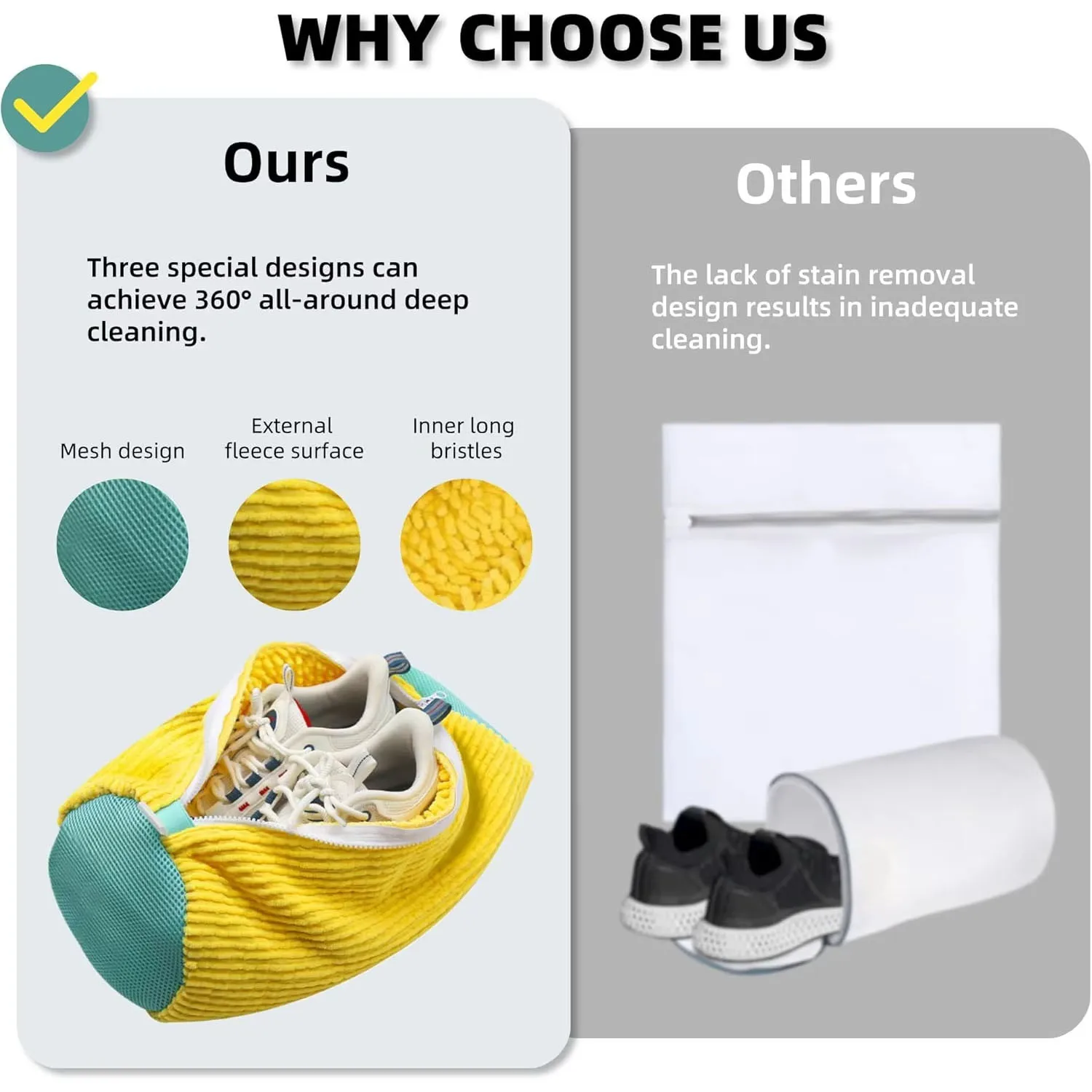 Puede limpiar eficazmente los zapatos, en comparación con el lavado de manos, usando una bolsa para lavar zapatos a máquina para limpiar los zapatos, puede ahorrar tiempo, mejorar la eficiencia y tener las manos libres.
