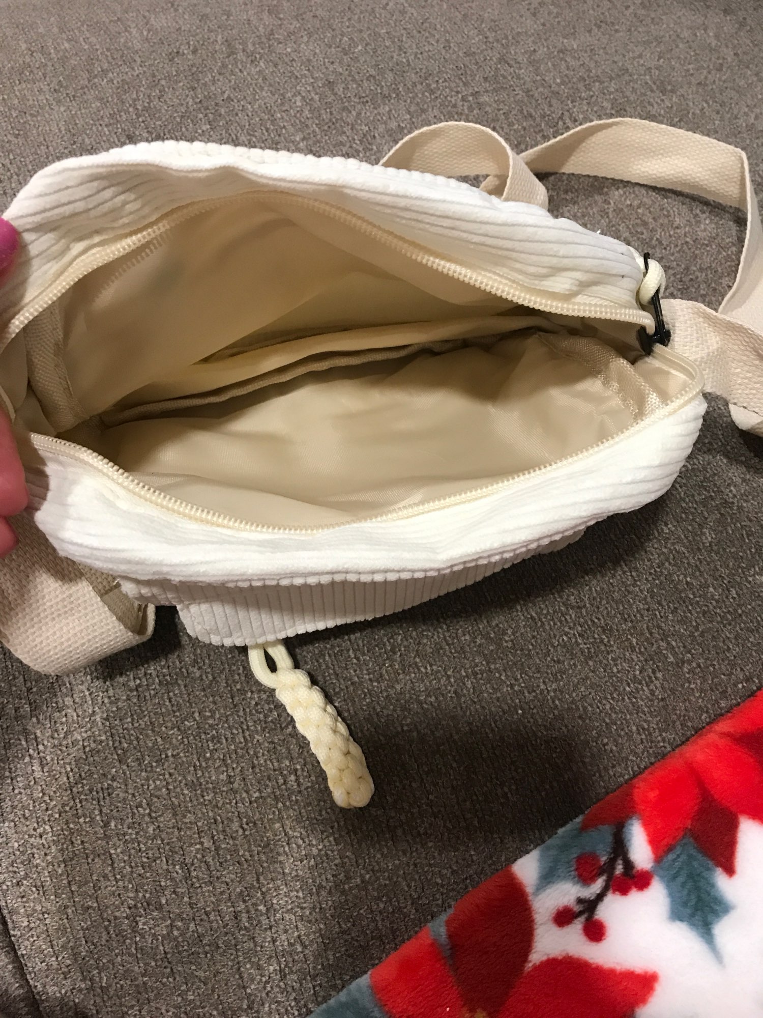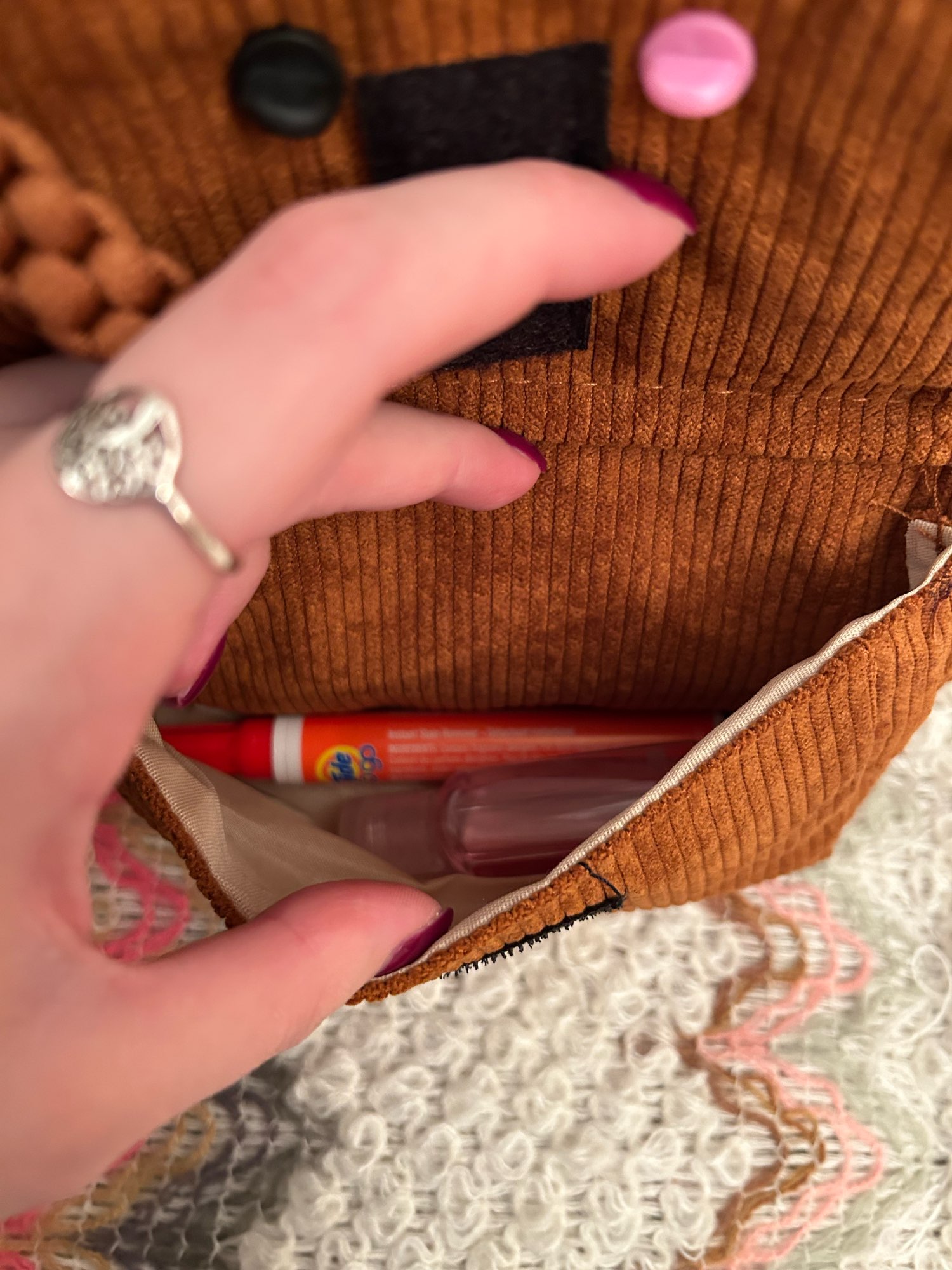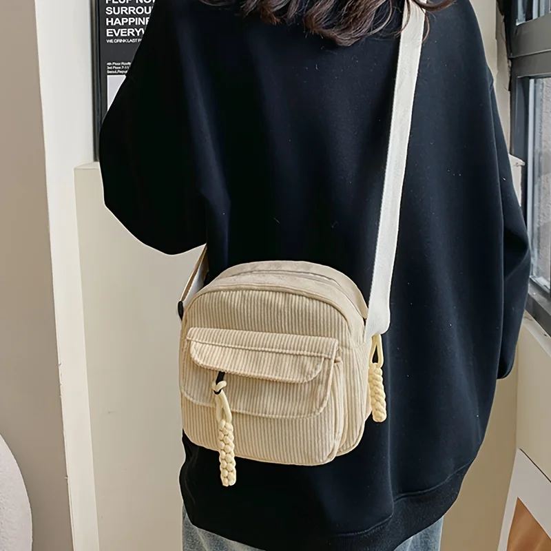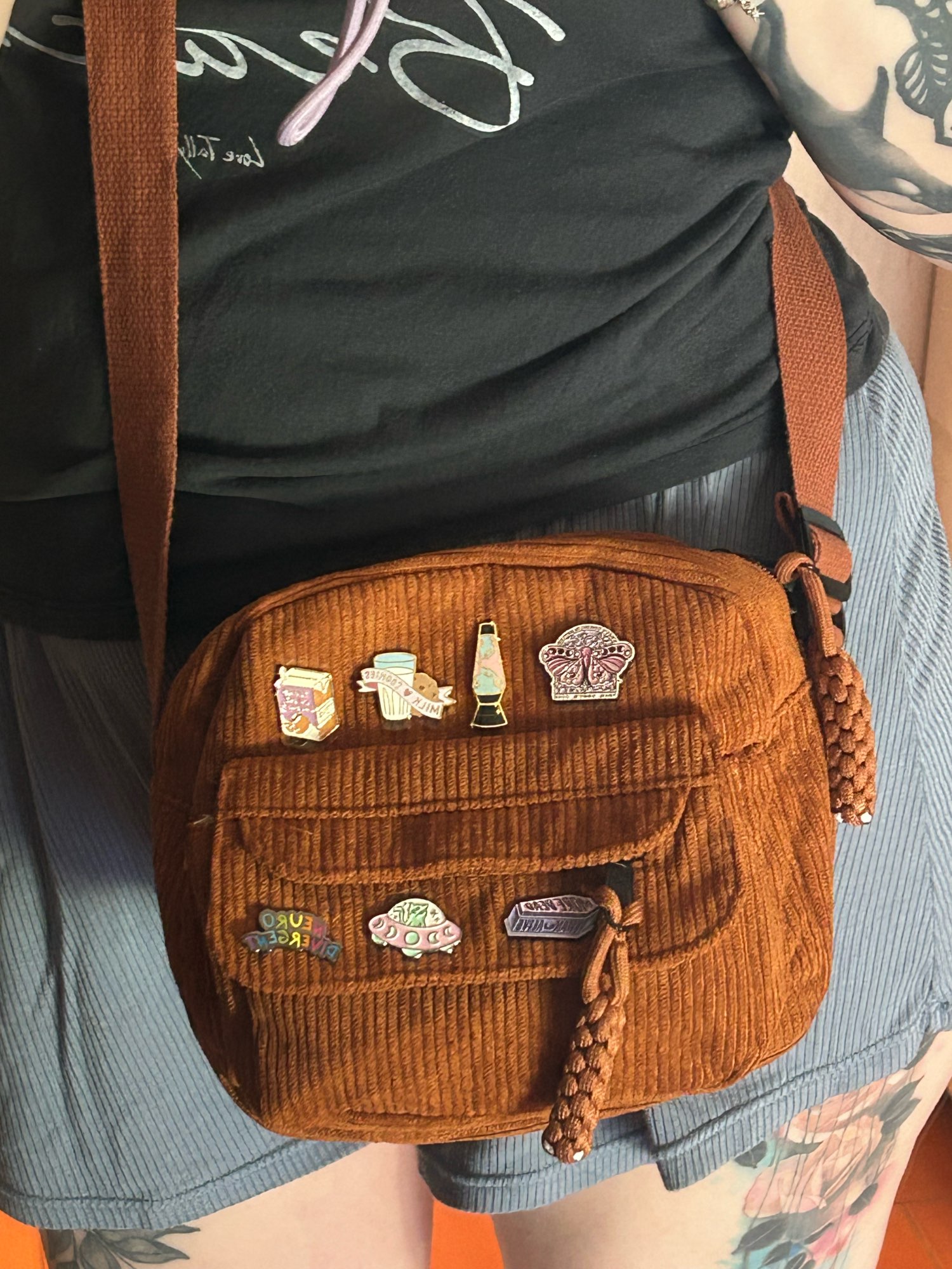¡Esta bolsa es perfecta! ¡La calidad es genial y me sorprendió con la cantidad de bolsillos que hay y la cantidad de espacio que tiene! En la parte delantera hay una pequeña bolsa con cremallera que es perfecta para fácil de evaluar chapstick justo en frente de una gran solapa. Entonces el compartimento principal, por supuesto, tiene mucho una habitación, entonces también tiene un bolsillo trasero con cremallera. Esta es una bolsa muy funcional que es linda e incluso muy cómoda ya que las correas son más anchas. ¡Realmente me encanta y recomiendo comprar!