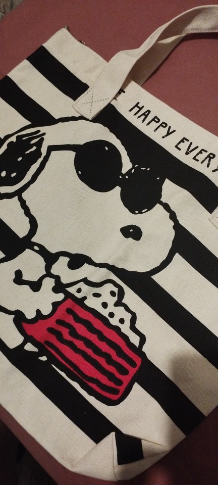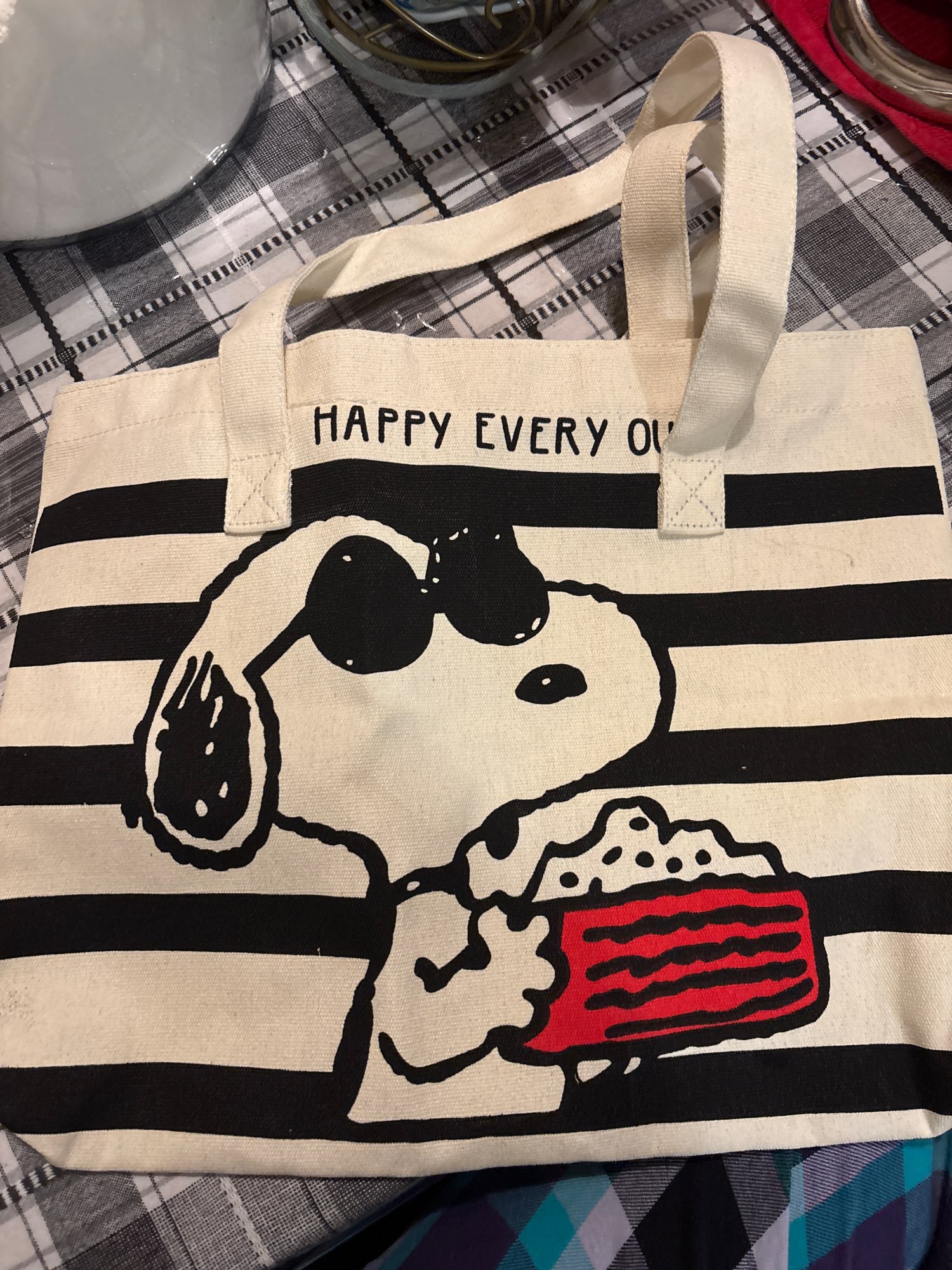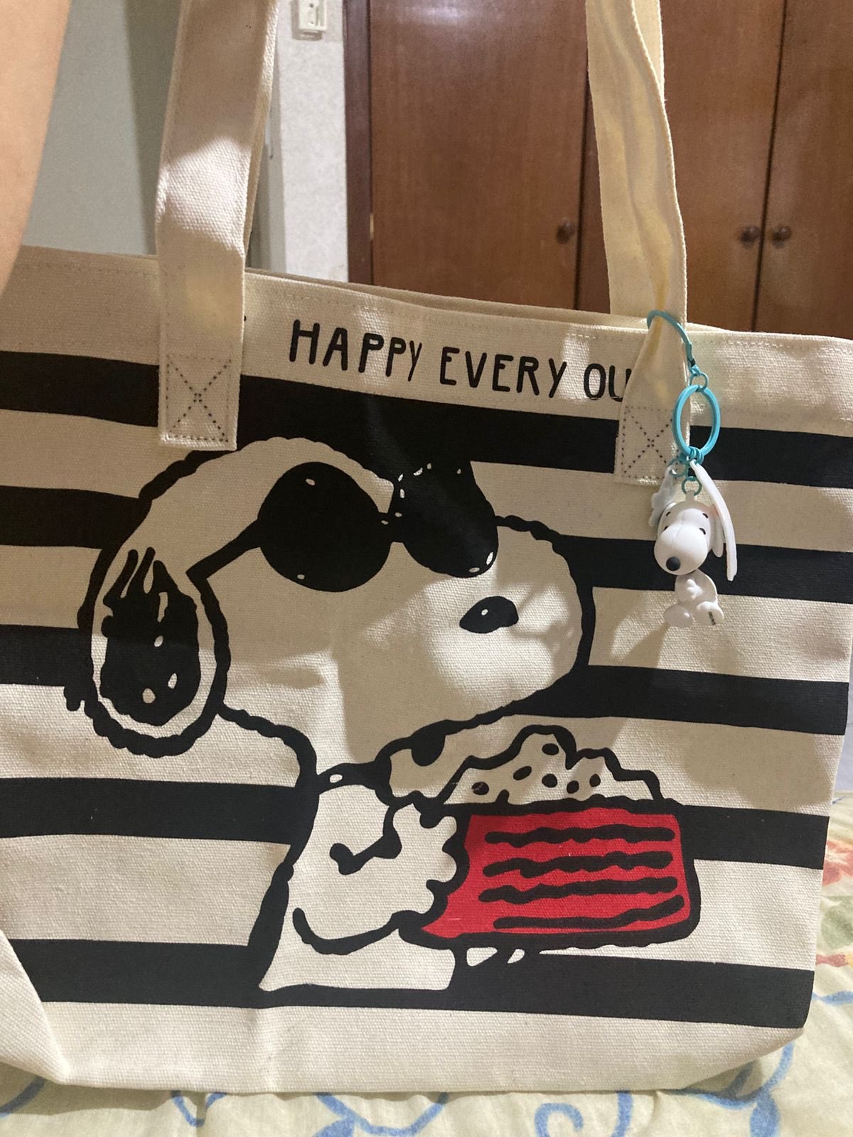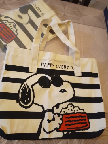 Bolso de lona de gran capacidad con bonitos dibujos de BANDAI Snoopy para estudiantes femeninas para sujetar libros, bolso de mamá
