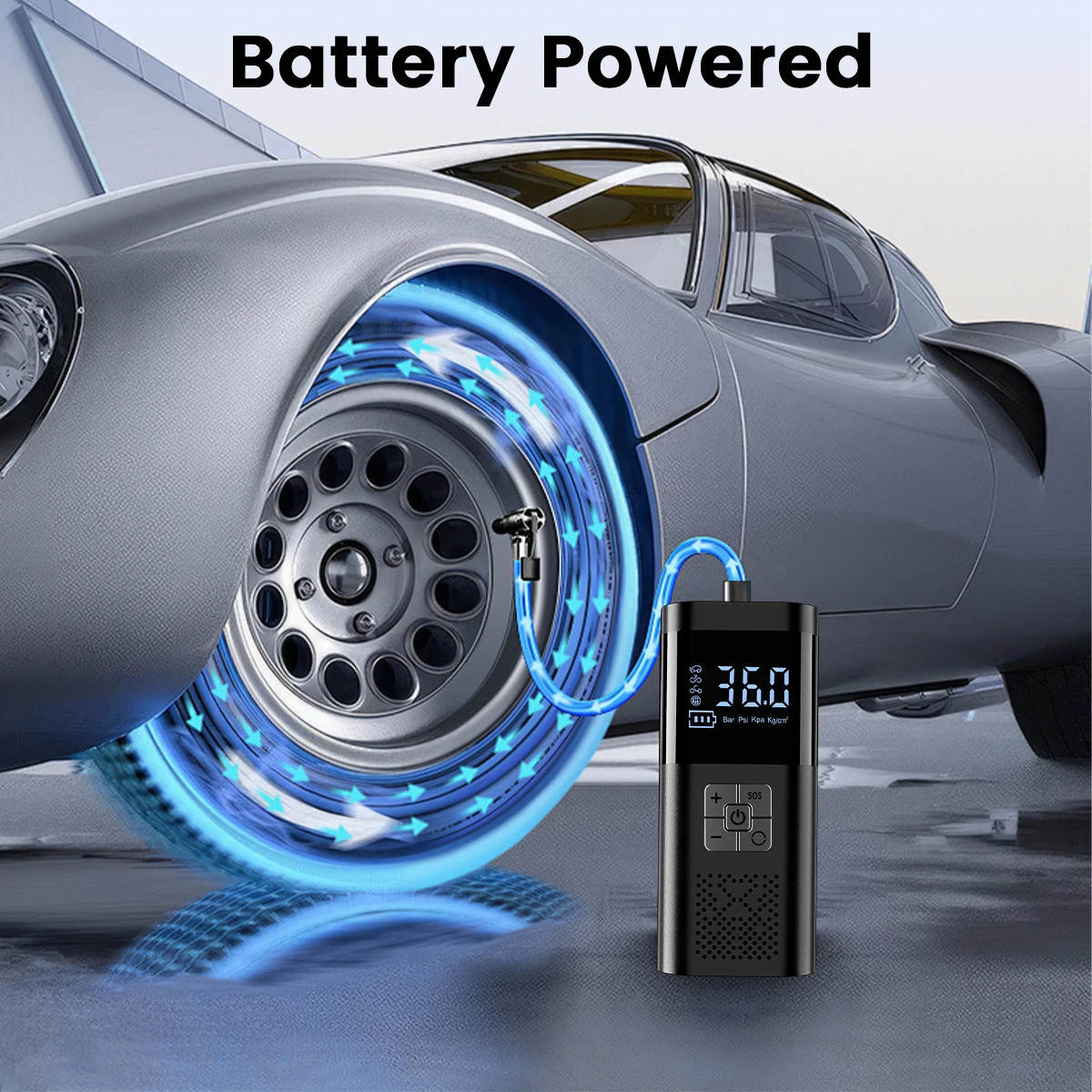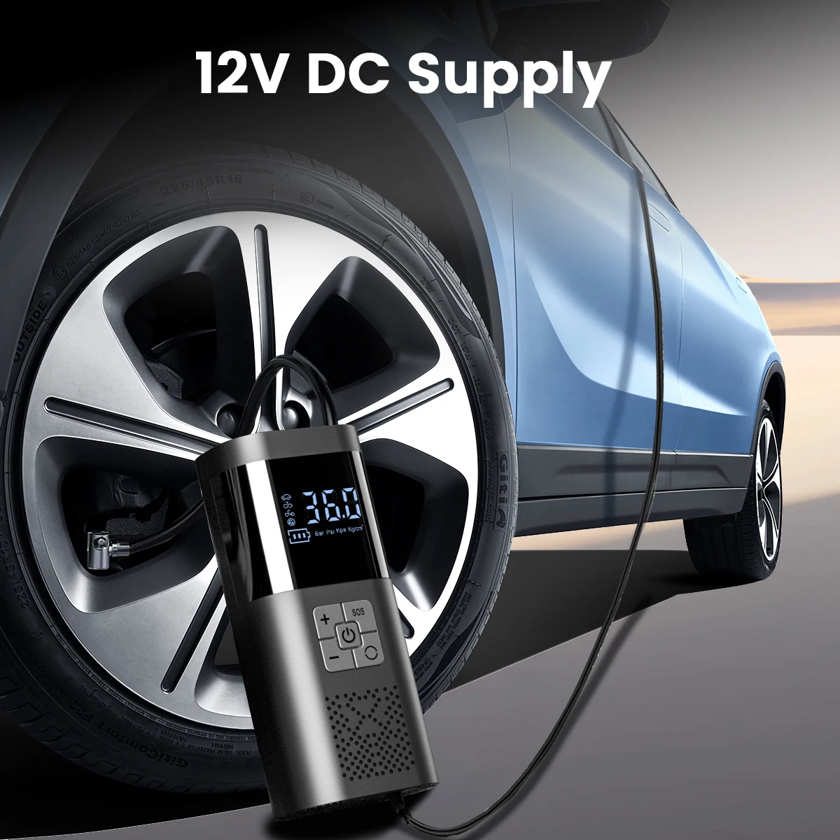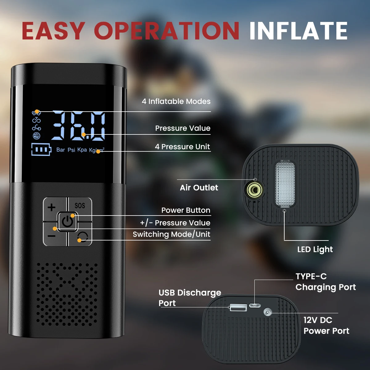 Cuenta con una gran pantalla inteligente y función de detección de presión de neumáticos, con una presión máxima de 150 PSI, lo que proporciona una operación conveniente para inflar varios neumáticos, kayaks y pelotas.