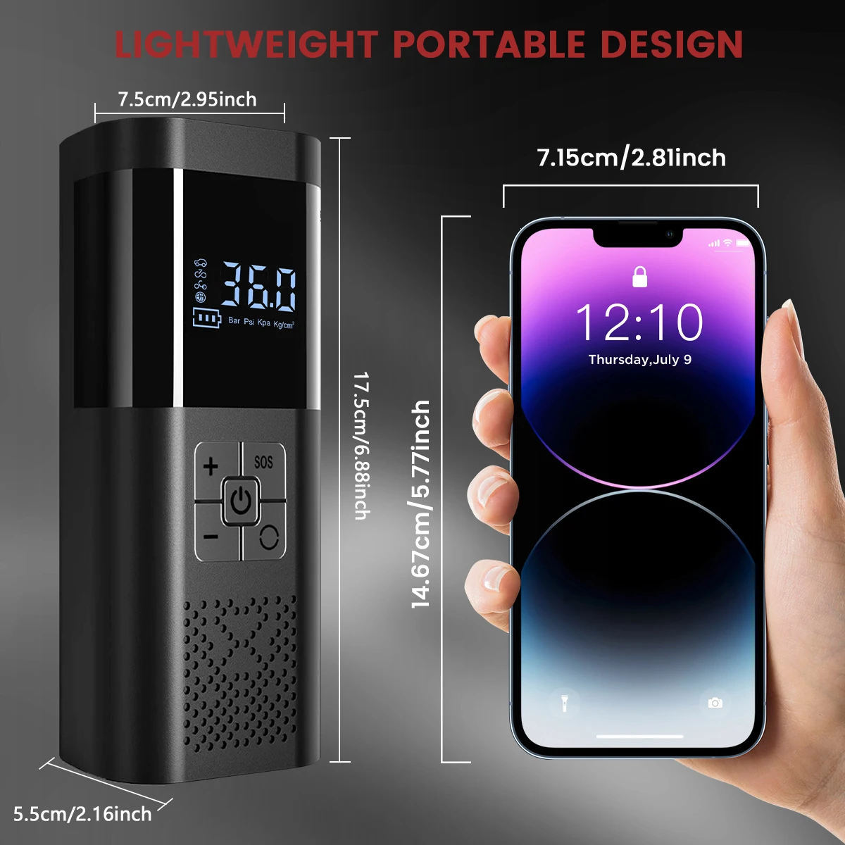 Diseñado con un cuerpo ultracompacto y liviano, con una carcasa resistente y resistente al agua con clasificación IP65 para mayor durabilidad y fácil almacenamiento en un automóvil.