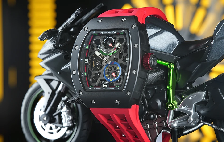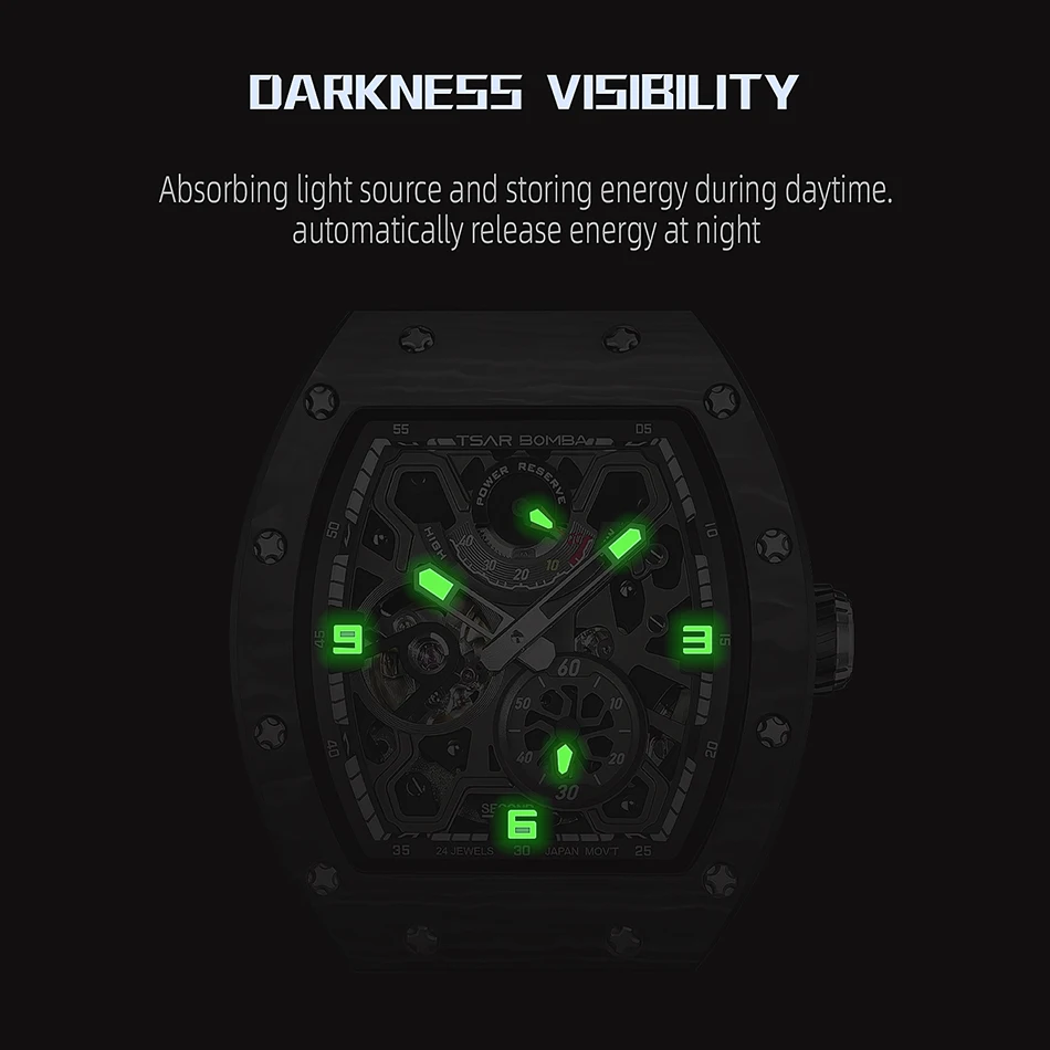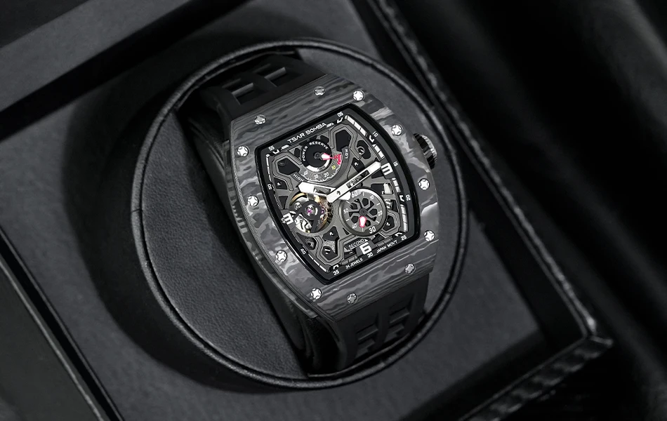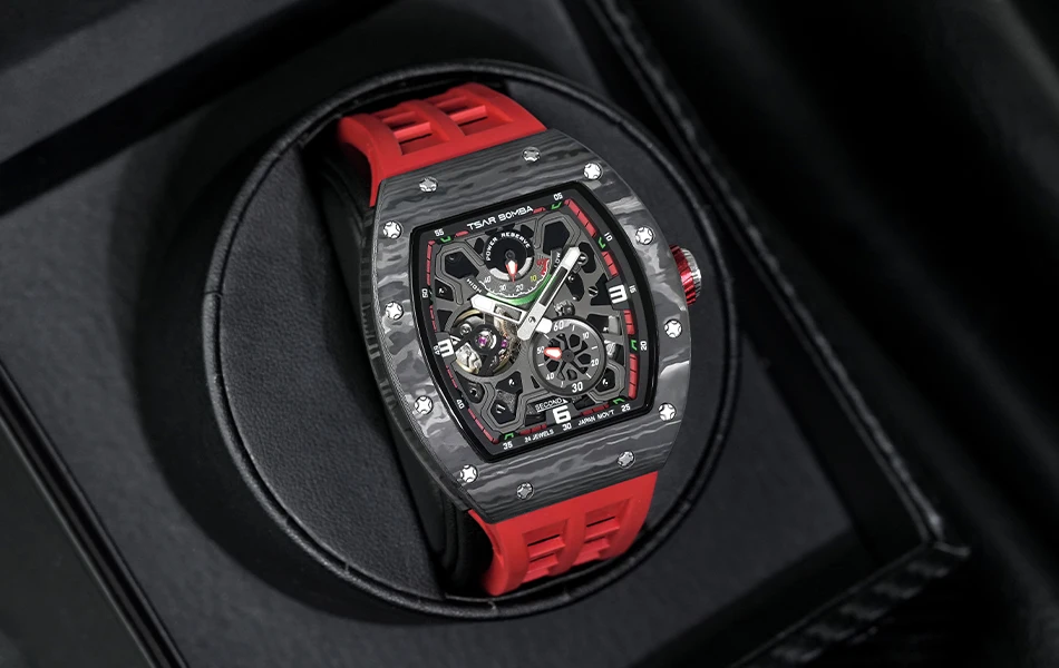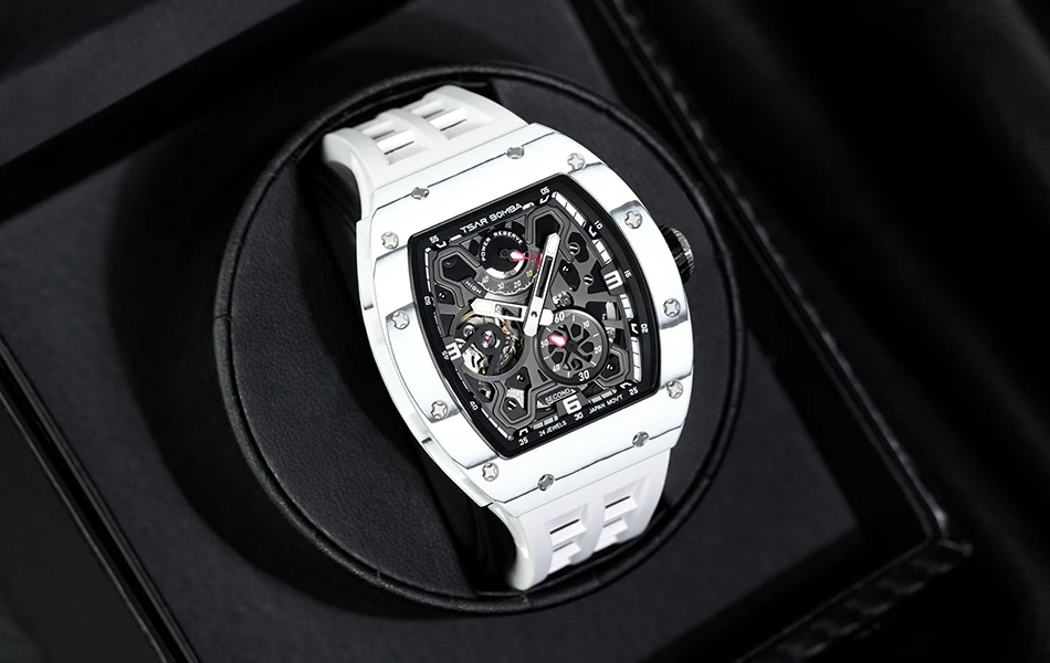 Descubre una hermosa colección de relojes automáticos en Tsar Bomba. Adecuado para negocios, deportes, fiestas, ocio y entretenimiento, la artesanía única inyecta nueva vitalidad en el reloj. El diseño de esfera esqueleto agrega un toque elegante a su reloj. El diseño de la superficie curva de la carcasa es más adecuado para la curvatura de la muñeca humana, y la experiencia de uso es mejor.
