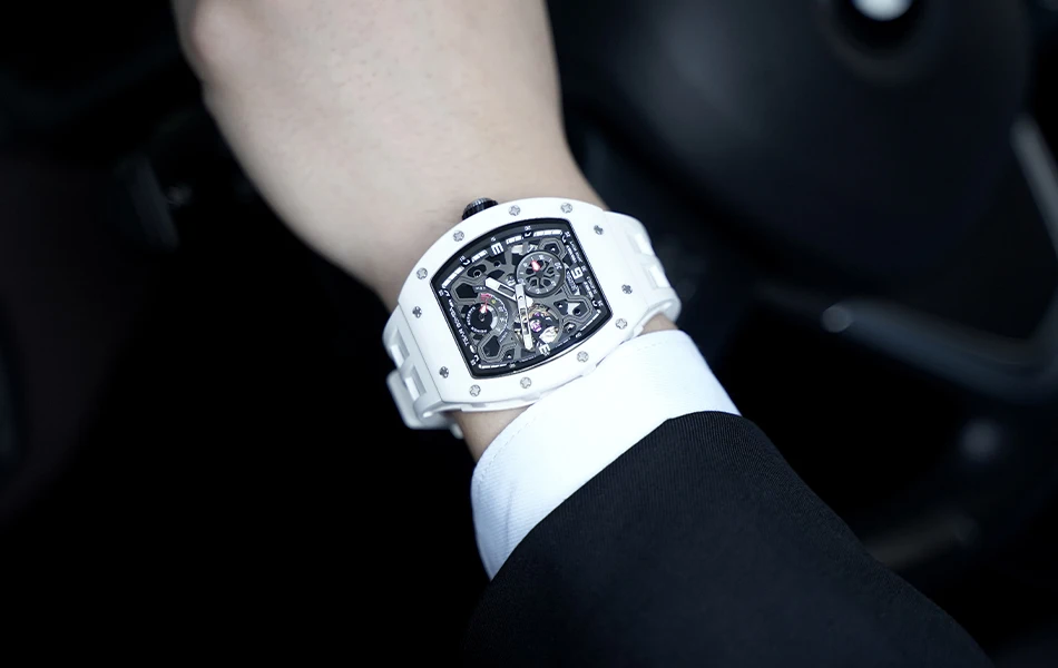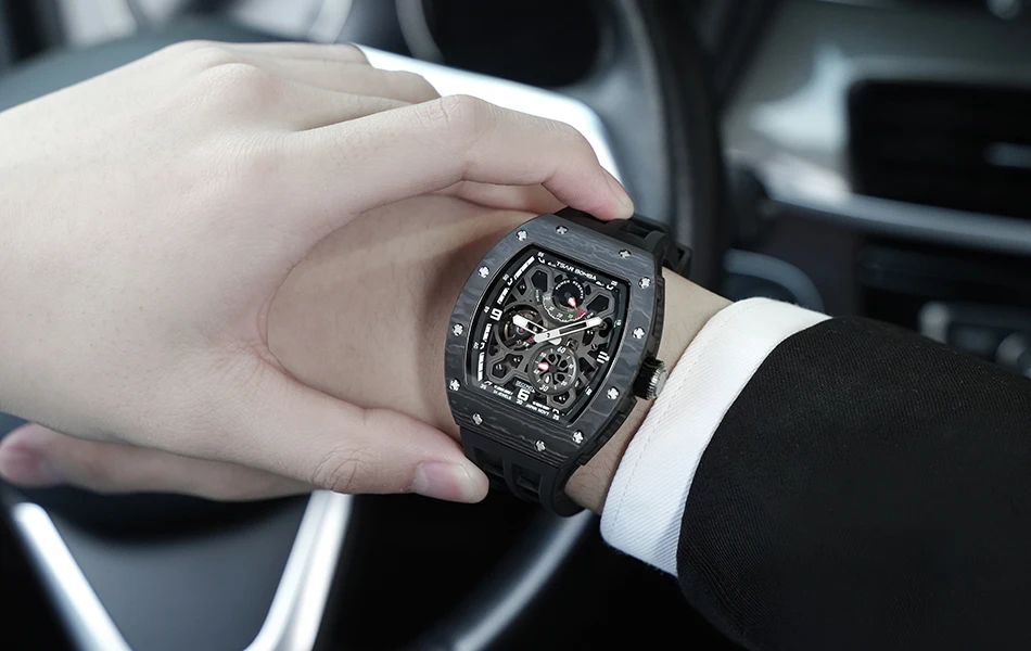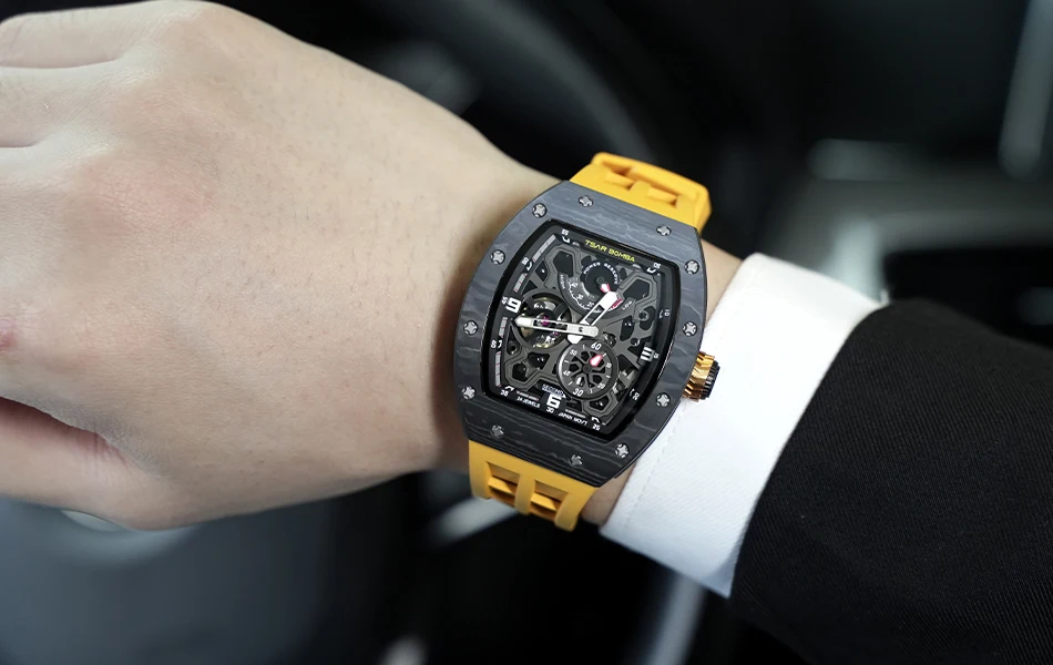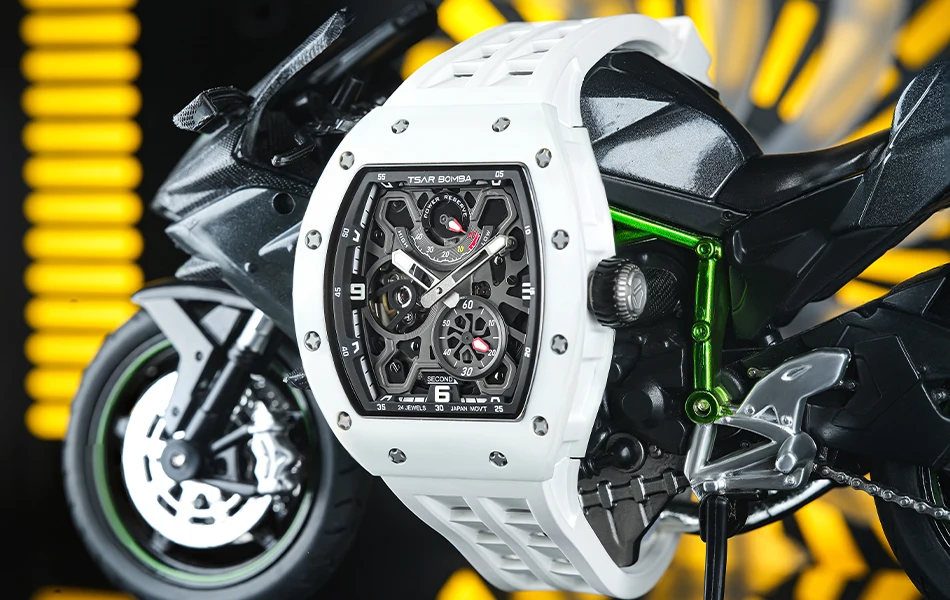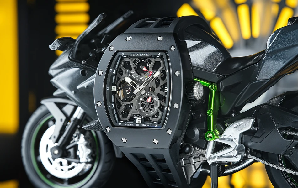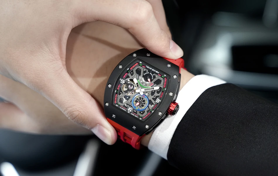 Descubre una hermosa colección de relojes automáticos en Tsar Bomba. Adecuado para negocios, deportes, fiestas, ocio y entretenimiento, la artesanía única inyecta nueva vitalidad en el reloj. El diseño de esfera esqueleto agrega un toque elegante a su reloj. El diseño de la superficie curva de la carcasa es más adecuado para la curvatura de la muñeca humana, y la experiencia de uso es mejor.