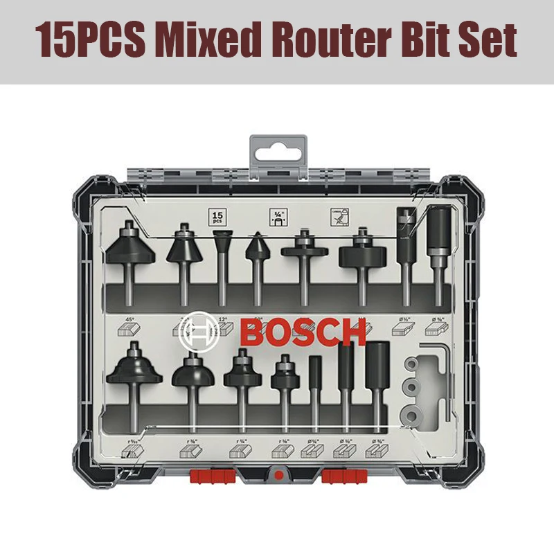 Bosch Shank Fresa Router Bit Set 1/4in Cortador de madera profesional Carburo Shank Mill Carpintería Grabado 6/15/30in 3/30in