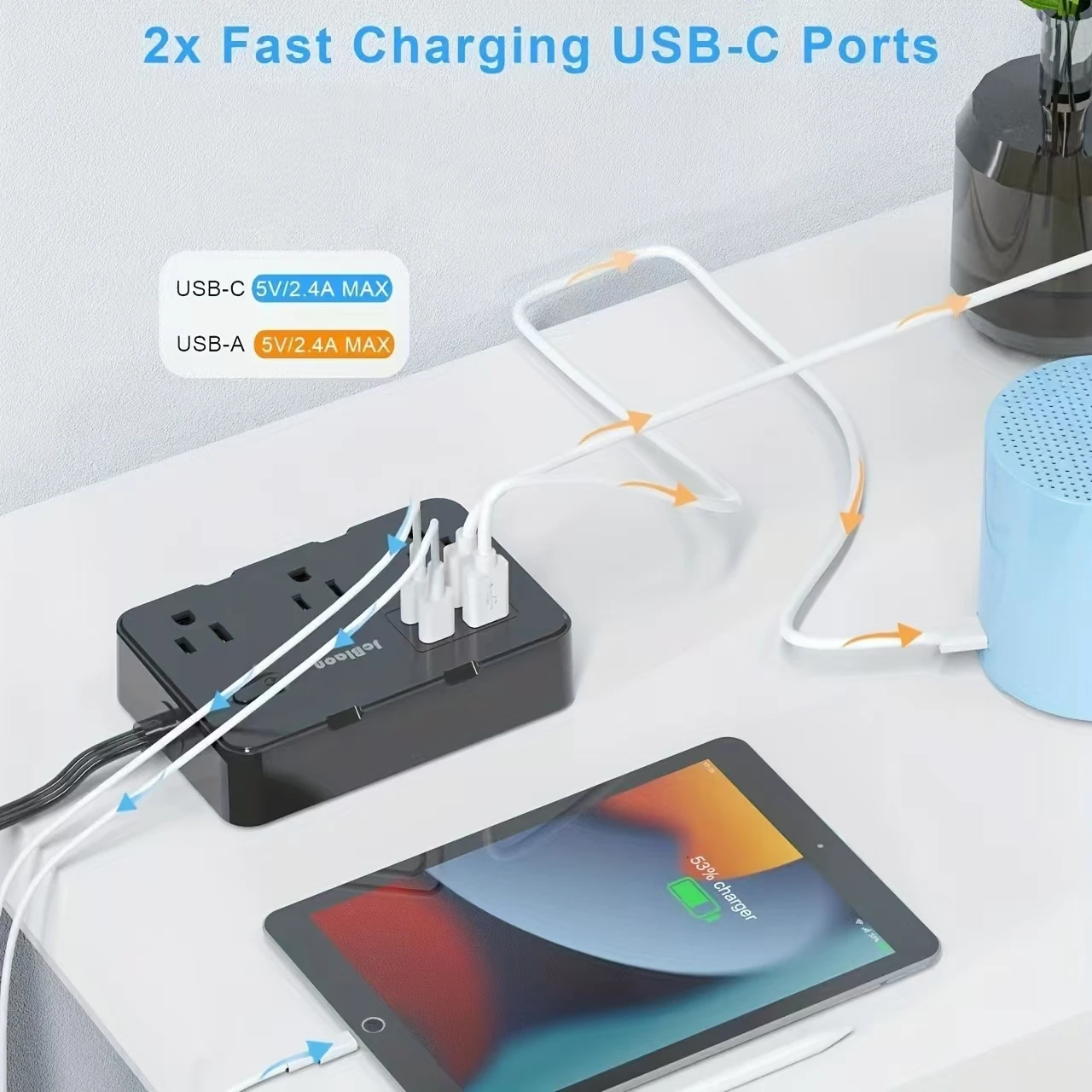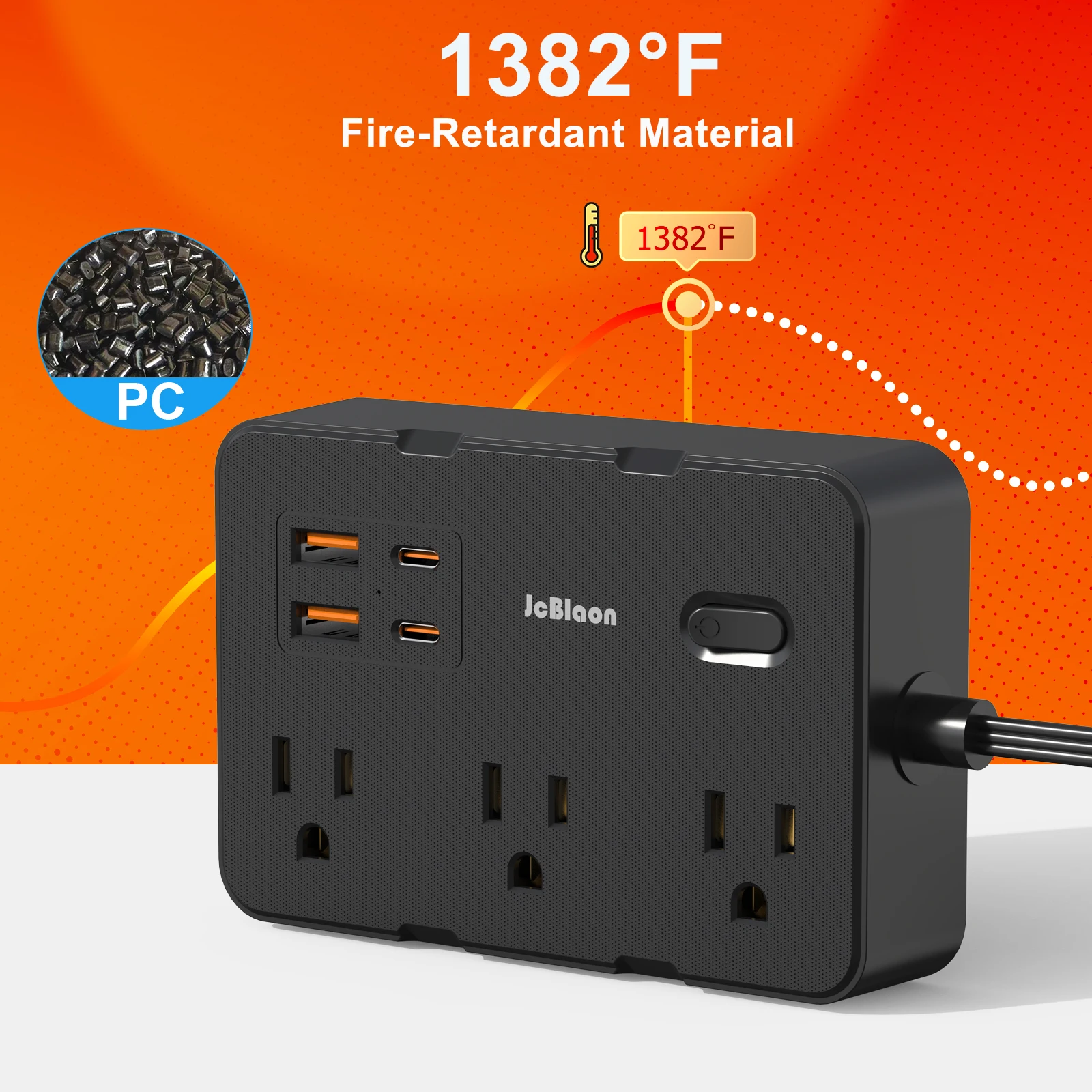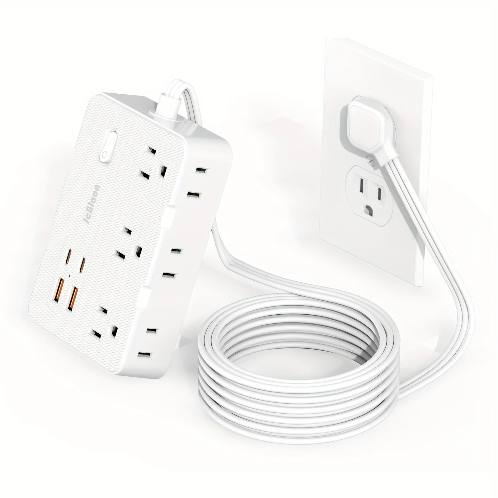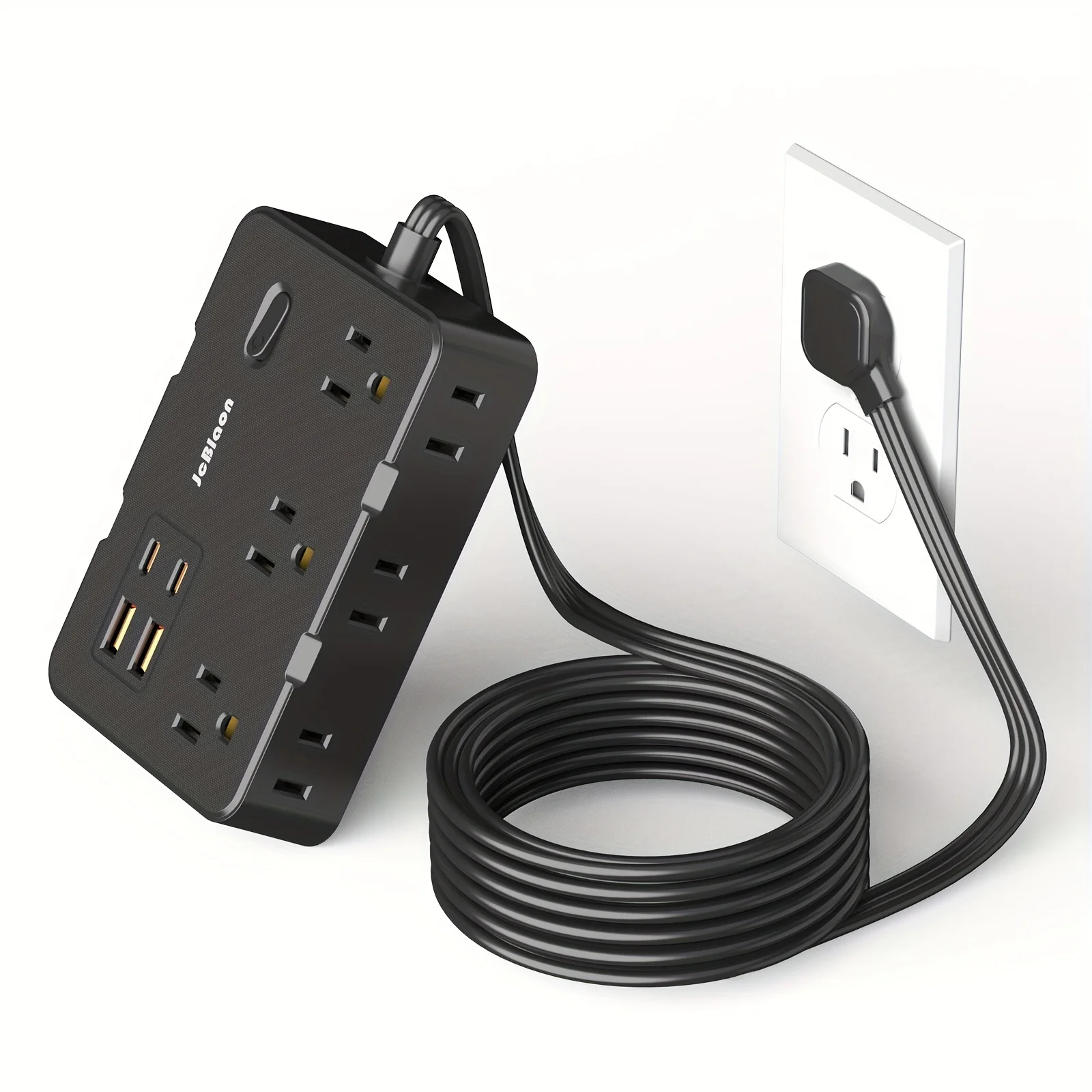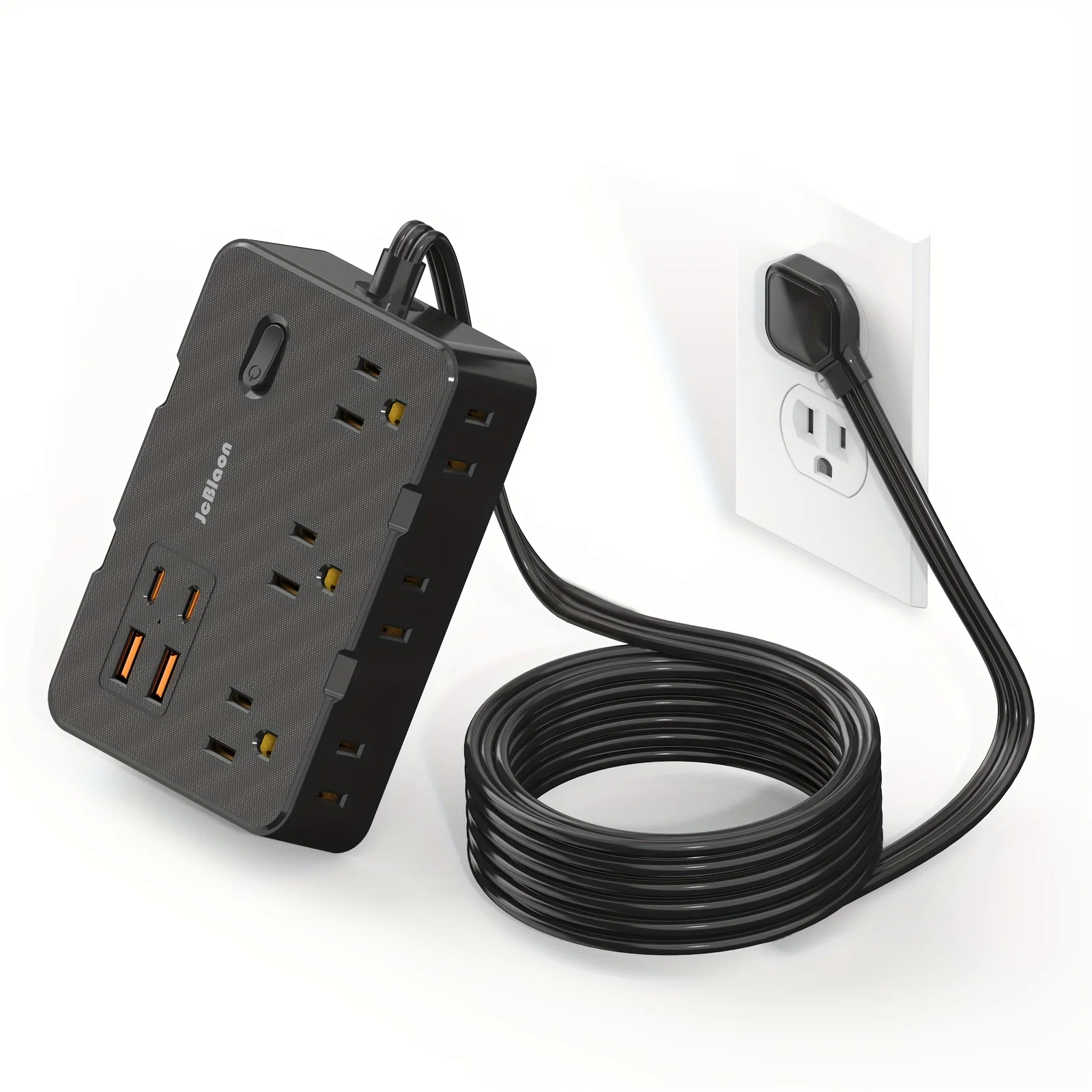 Tira de Alimentación protectora contra sobretensiones de 5 pies con 4 puertos USB (2 USB C), extensor de 6 salidas, soporte de pared, estación de carga de escritorio para el hogar, la Oficina, la escuela, los viajes y lo esencial para el dormitorio, negro/blanco