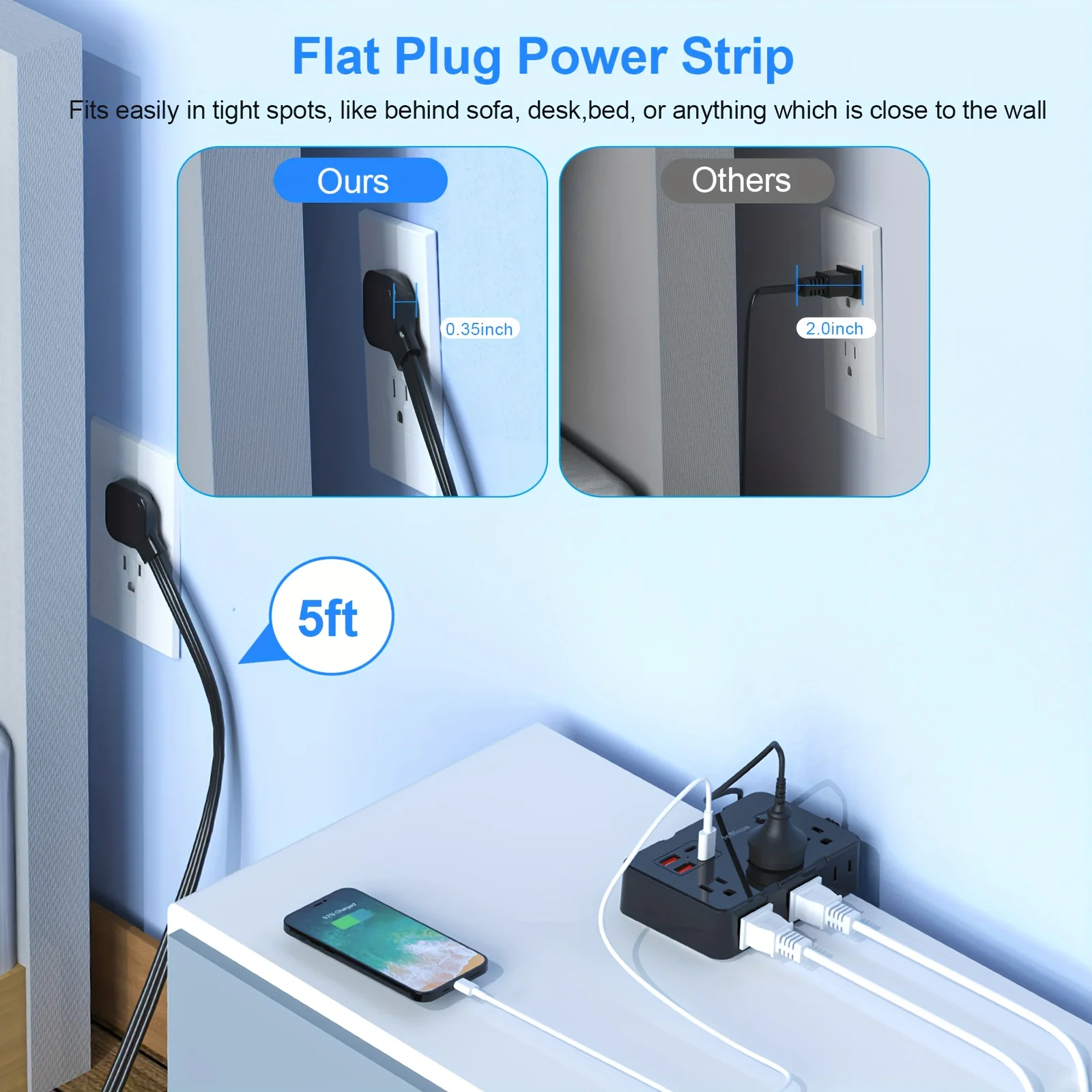 Cable de extensión de enchufe plano ultrafino