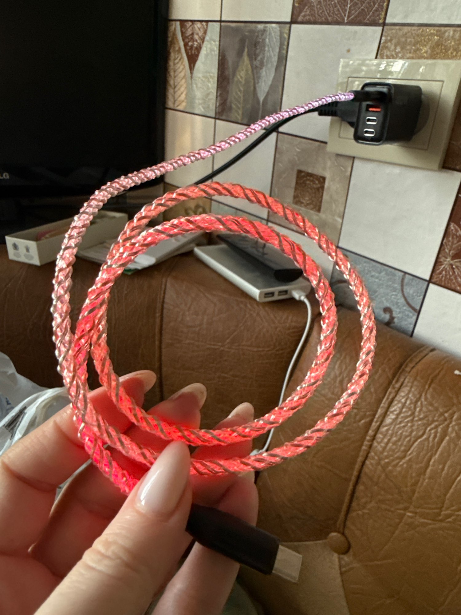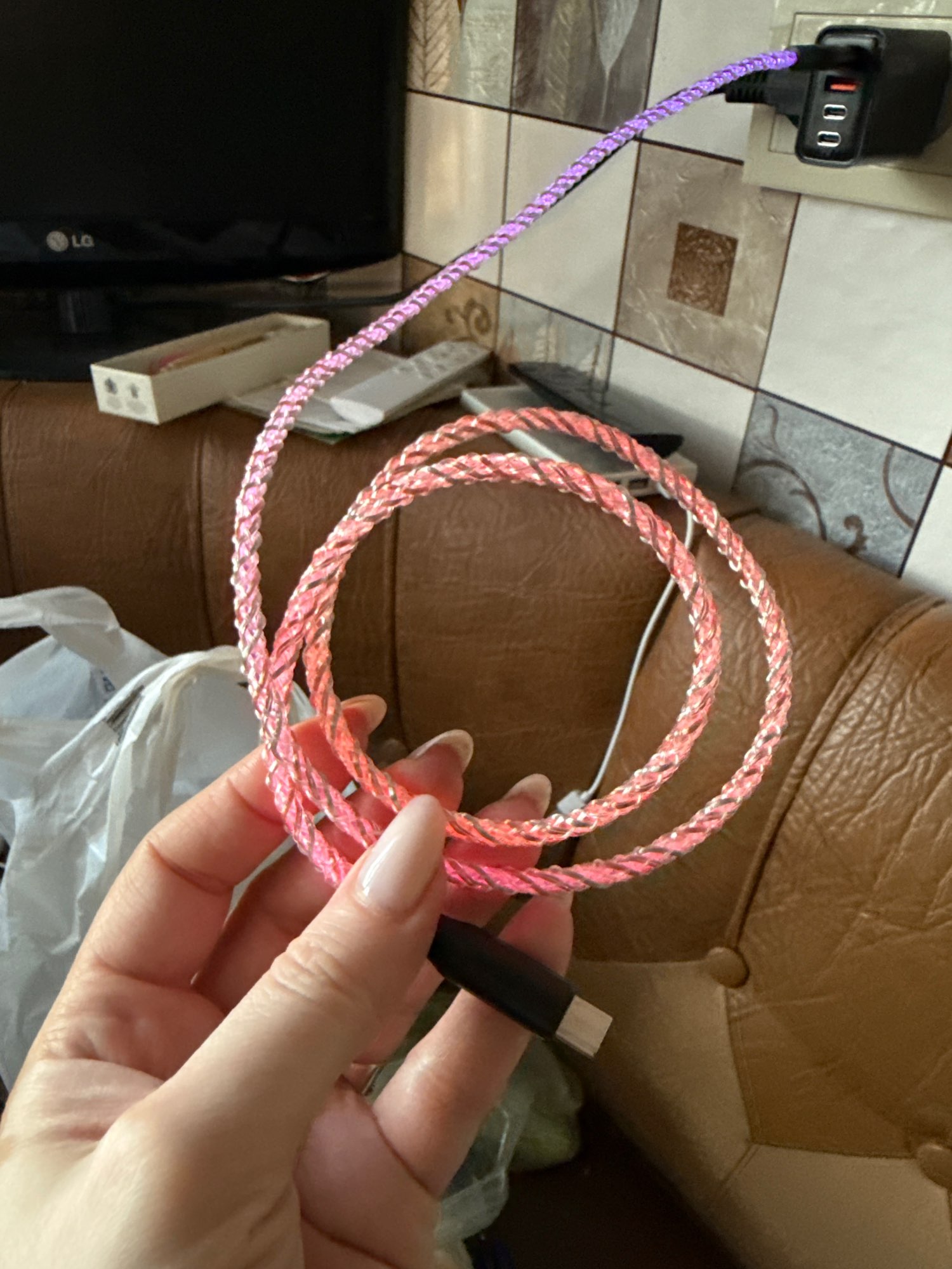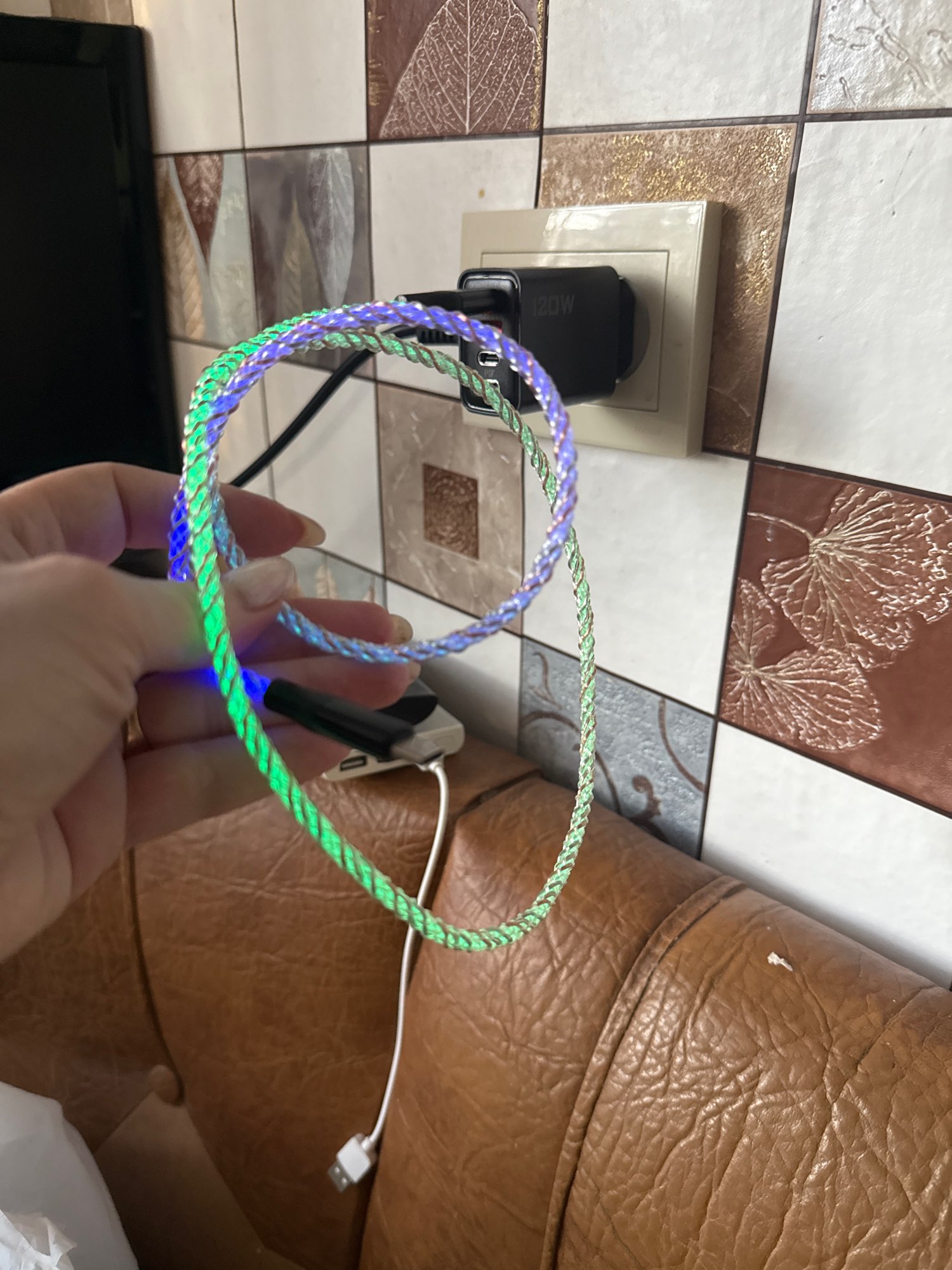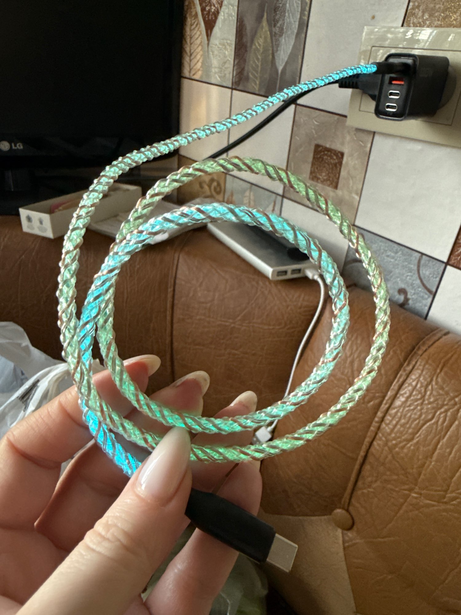 Cable MVQF RGB luz de respiración de carga rápida Cable de datos de 66W cable USB tipo c para iPhone 100W carga rápida para HUAWEI Xiaomi