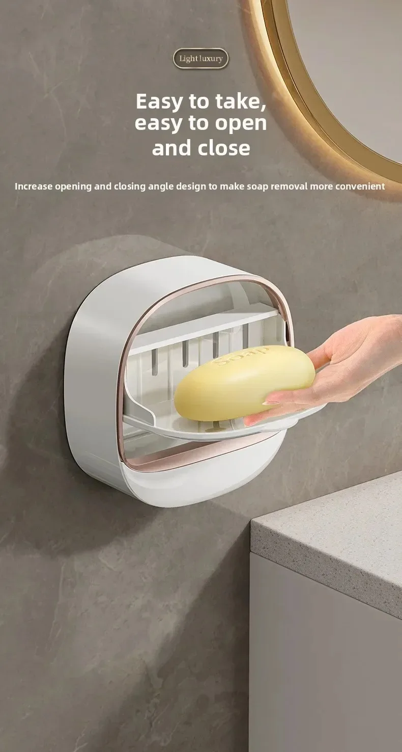 Caja de jabón de montaje en pared, contenedor de drenaje para baño sin taladro con bandeja para fregadero de cocina, soporte de jabón fácil de limpiar, organizador de almacenamiento