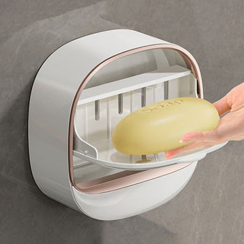 Caja de jabón de montaje en pared, contenedor de drenaje para baño sin taladro con bandeja para fregadero de cocina, soporte de jabón fácil de limpiar, organizador de almacenamiento