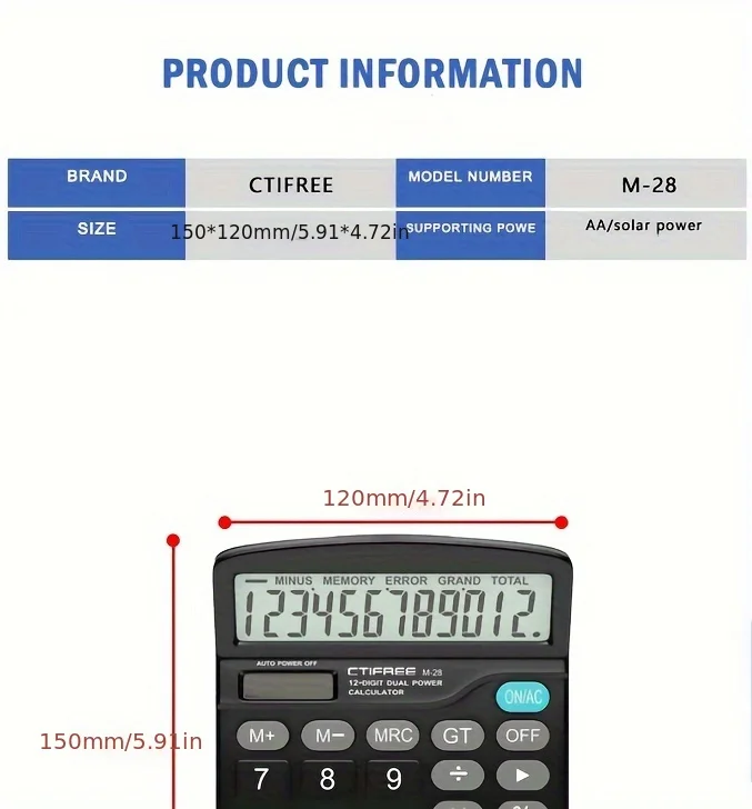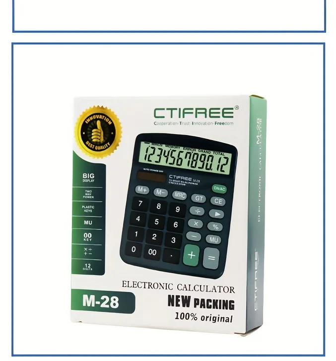 Calculadora con pantalla LCD grande de 12 dígitos Calculadora de función estándar con energía dual solar y batería para oficina de escritorio básica en el hogar