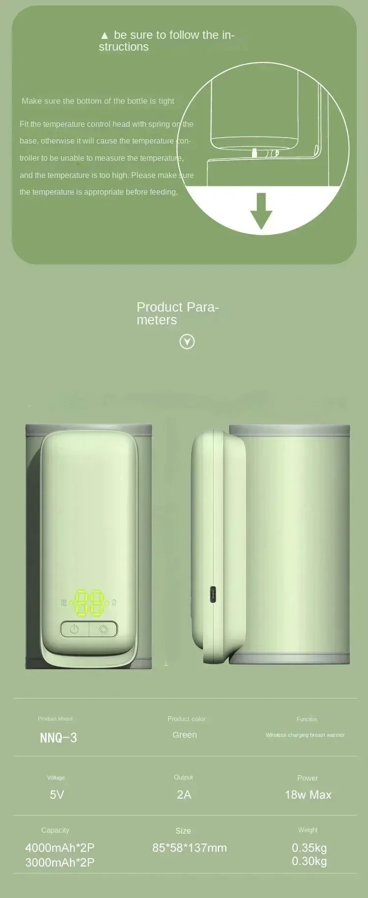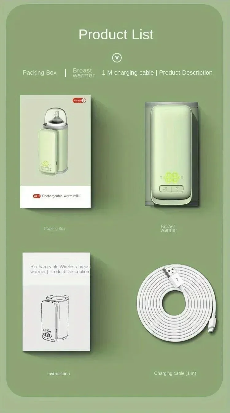 Calentador de biberones recargable, ajuste de temperatura de 6 niveles con pantalla de temperatura, funda más cálida, accesorios de alimentación