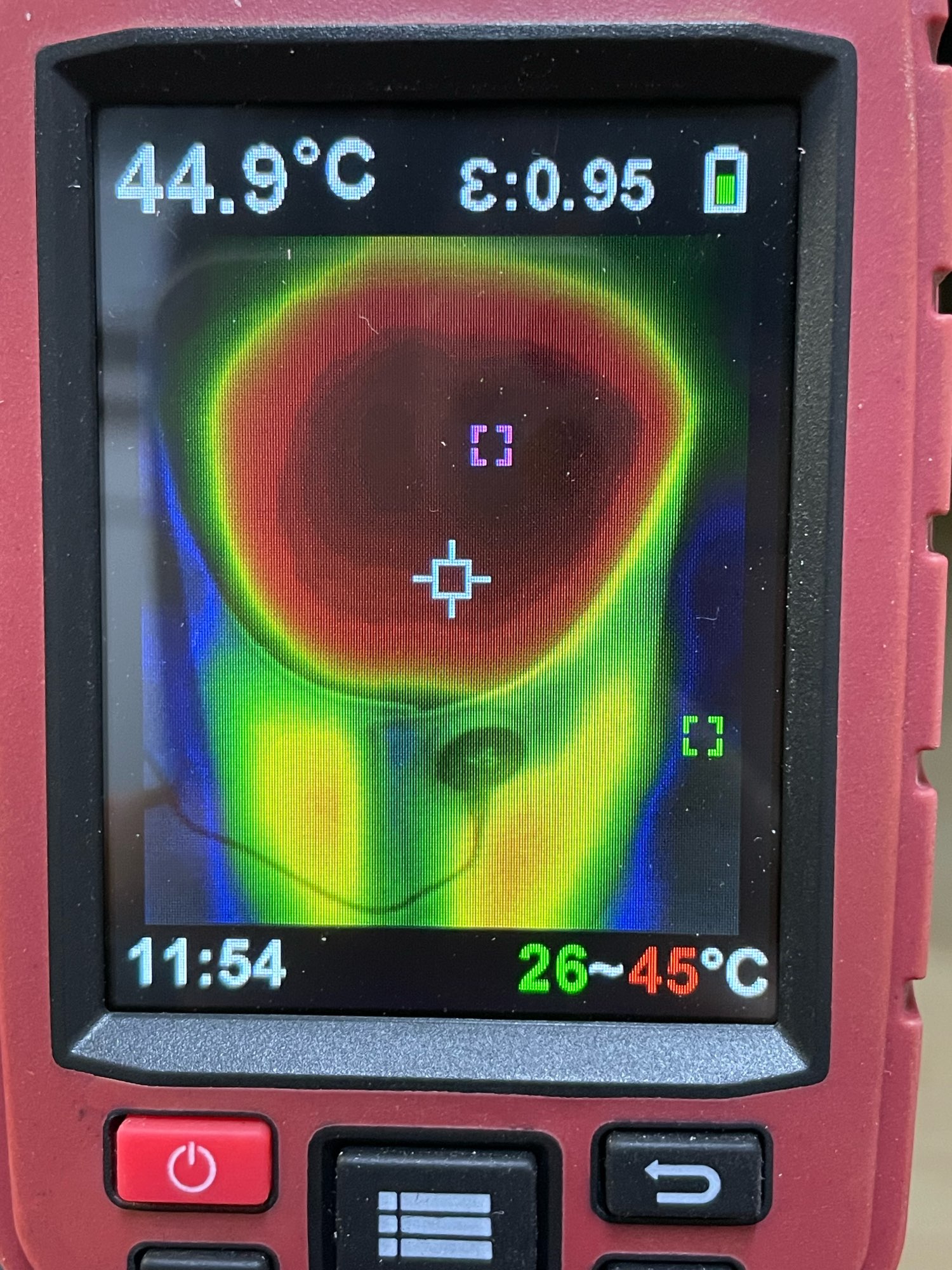 La temperatura más baja de 45 grados consume aproximadamente 146W al calentarse por primera vez, luego cambia a 0W al alcanzar la temperatura establecida, y cuando baja a unos 35 grados, vuelve a calentarse utilizando entre 110 y 140W repetidamente. La temperatura máxima de 70 grados utiliza 215W durante el calentamiento inicial y se mantiene constantemente entre 180~195W después de alcanzar la temperatura establecida. Tenga en cuenta que a medida que aumenta la temperatura, también aumenta la energía utilizada para mantenerla, y el consumo de energía varía dependiendo de lo fría que esté la habitación. La temperatura establecida es bastante precisa, y las partes de calentamiento están bien distribuidas por todo el área. Cuando se observa en fotografías de imágenes térmicas, la parte exterior muestra una temperatura más baja, pero esto se debe al aislamiento, mientras que la parte interior mide 45 grados en su totalidad. Tengo las manos y los pies fríos, por lo que mis pies sudan incluso en invierno. Necesitaba un dispositivo de calefacción de baja temperatura y hice una excelente compra.
