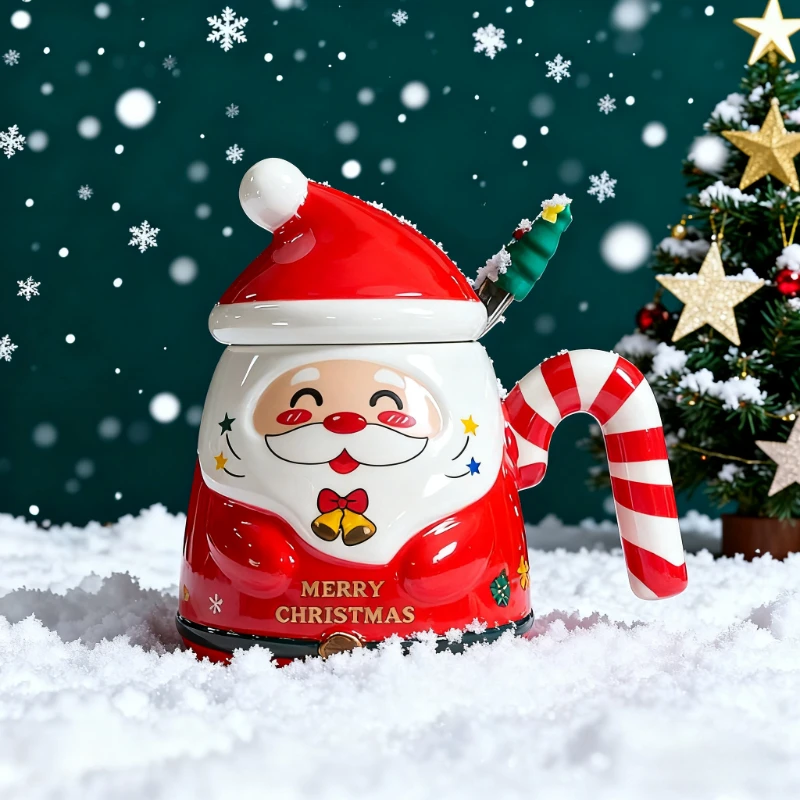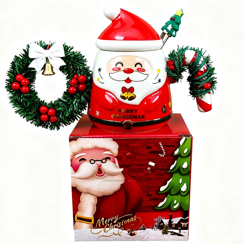 ¡Caliente regalo de Navidad y Año Nuevo! Juego de regalo de taza de cerámica creativa, taza de Navidad con cuchara, diseño de árbol de Navidad, ¡taza de alto valor!